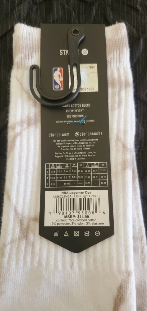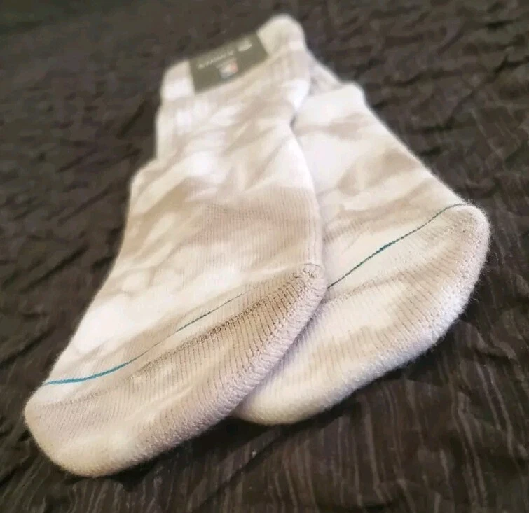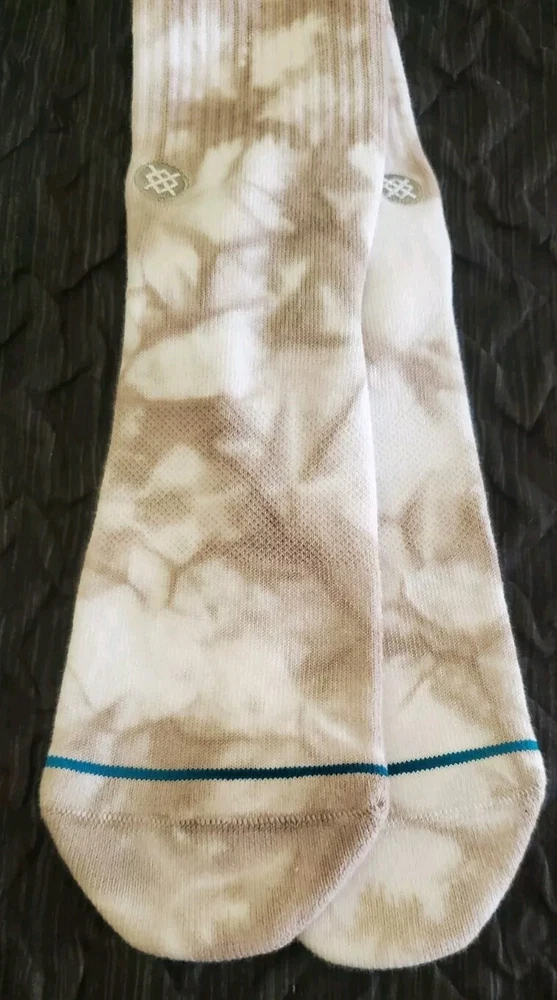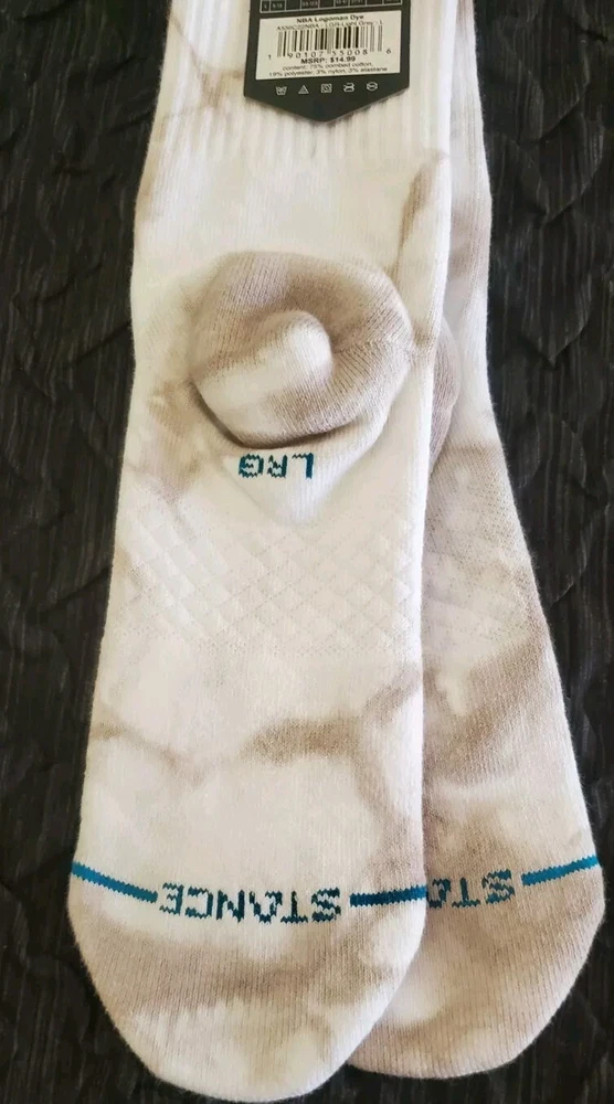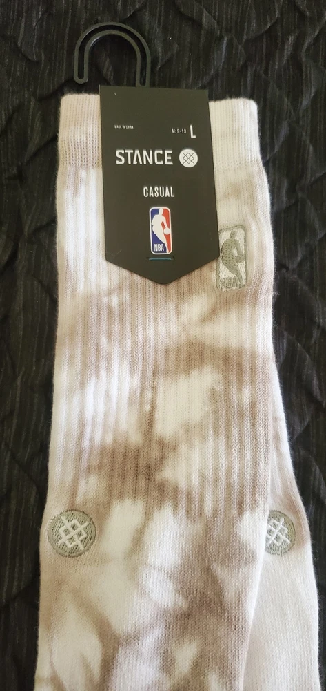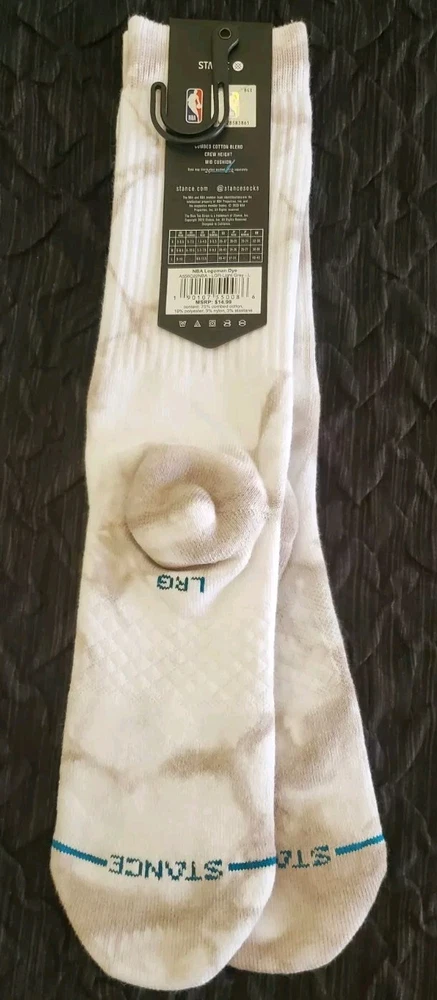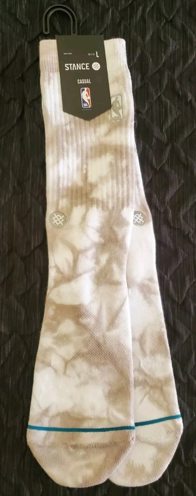 The Stance Adult Natural Crew Cotton Cushion NBA Basketball Logoman Dye Socks in size Large feature the iconic NBA Logoman Dye pattern and offer mid-calf length with mid cushioning and arch support. Made from a comfortable cotton blend material, these breathable socks are machine washable and suitable for all seasons. Perfect for casual wear or basketball activities, these Stance socks are designed with embroidery and come in a stylish crew sock style. A single pair is included in this listing. Pictures are of actual socks. Brand new never worn and no defects. Feel free to contact me with any questions