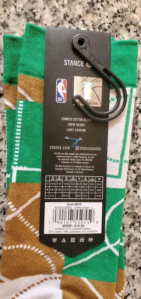 The Stance Men's NBA Celtics Basketball Crew Socks in size L feature a vibrant green color with Boston Celtics branding. These crew-length socks are designed for basketball performance, making them ideal for fans of the Celtics or basketball enthusiasts. Perfect for men who prefer regular-sized socks, this pair is a stylish and functional choice for both on and off the court. GO CELTICS!! Pictures are of actual socks. Brand new never worn and no defects. Feel free to contact me with any questions.