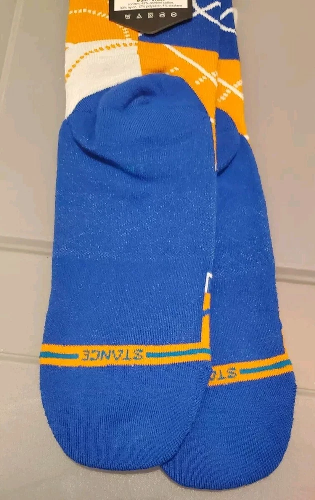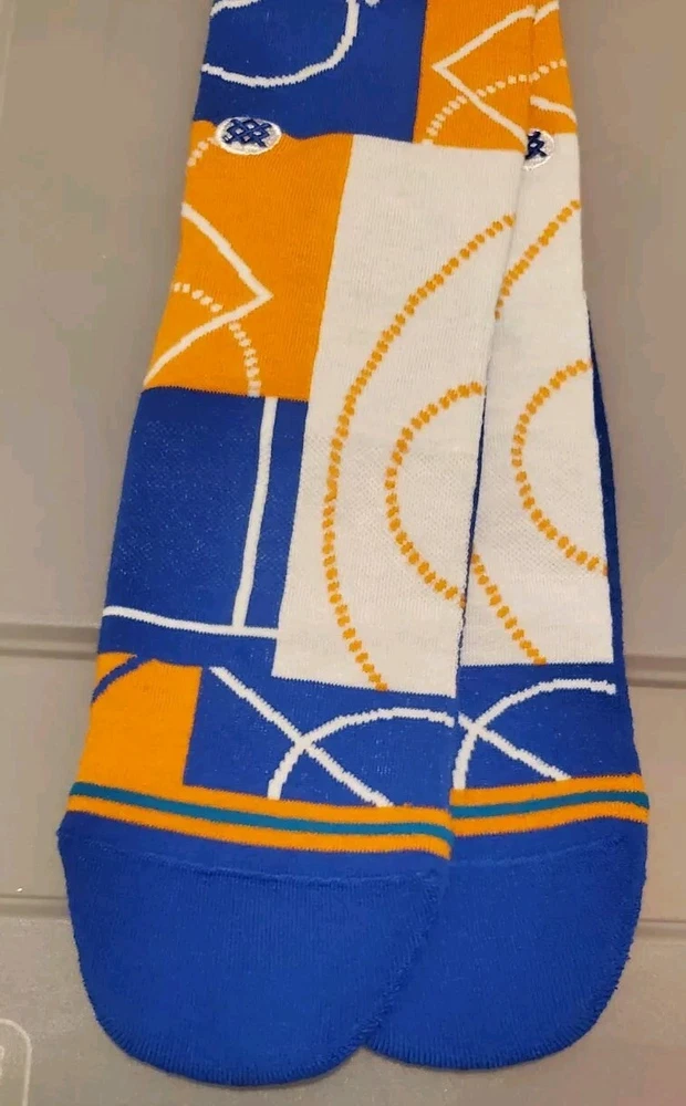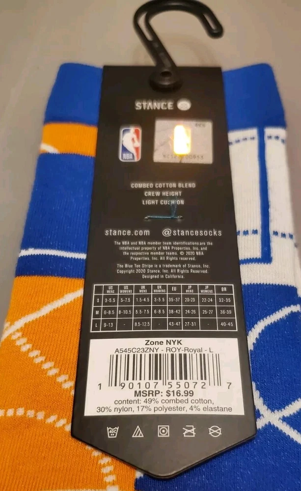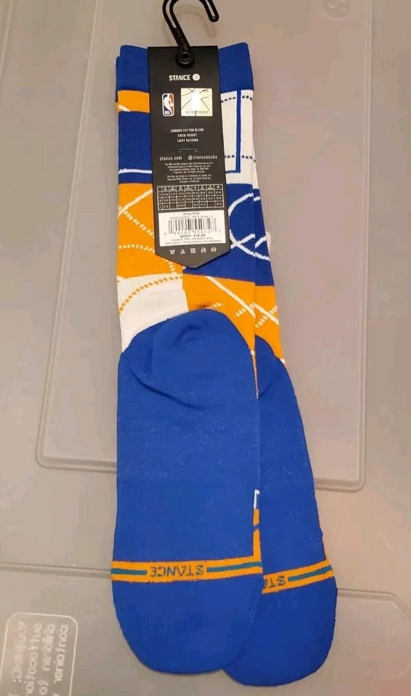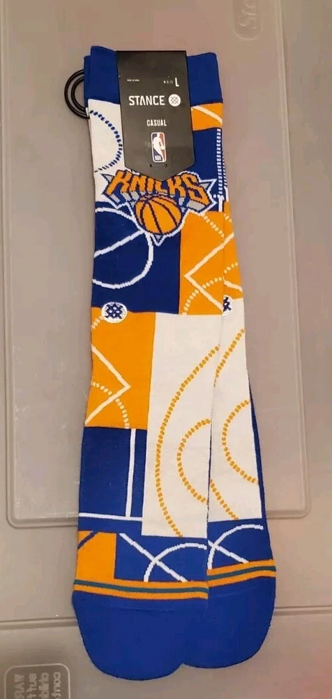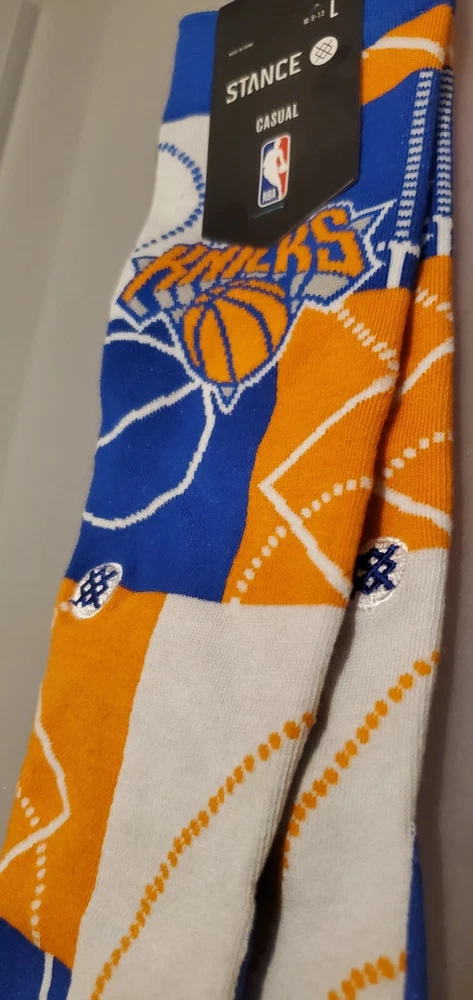The product is a pair of Stance NBA New York Knicks Zone Crew Socks in size Large (9-13) designed for men. These basketball-themed sports fan socks feature the New York Knicks team colors of blue and white, making them a stylish accessory for fans to show support for their favorite NBA team. Manufactured by Stance in China, these socks are officially licensed by the National Basketball Association and are ideal for basketball enthusiasts looking to add a touch of team spirit to their outfit. Pictures are of actual socks. Brand new never worn and no defects. Feel free to contact me with any questions.