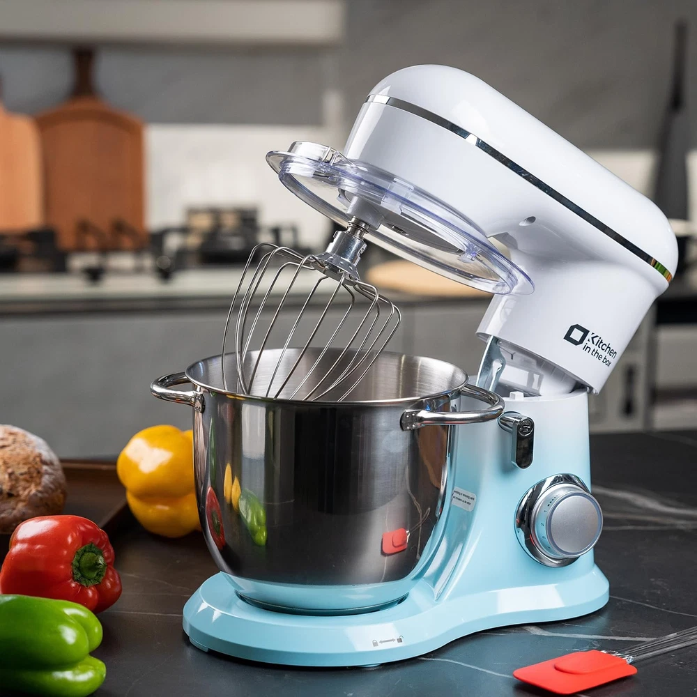 4.5QT+5QT Two Mixing Bowls- Our Stand mixer equipped with 4.5Qt stainless steel bowl and 5QT extra food safe plastic mixing bowls, perfect for a variety of mixing and baking needs. Special Nesting design for nest two bowls together and offer space-efficient storage. 10 Speeds and Tilt Head Design - This Kitchen mixer has 10 different speed options,suitable for mixing bread dough, thick batters, meringues, and whipping cake cream, plus lower speeds for stirring and finessing your most delicate concoctions,could suit perfectly to different ingredients. Tilt-head design mixer allows access to install or uninstall bowls and accessories easily. Upgraded Accessories and Dishwasher Safe- Aluminium dough hook and flat beater with protection layer,stainless steel whisk are all easy to attach,more sturdy and durable. All of the attachments for the food mixer are dishwasher-safe for quick and easy cleaning. Elegant Designed And More Color Options - The electric mixer with modern design look, not only work well but also look well. Nested bowls design for space-saving Perfectly suitable for various of your household baking need. And multiple colors to choose,meet a variety of aesthetic needs for your kitchen. Excellent Gift and Support - The electric stand mixer is also an ideal gift for your family and friends. We have confidence in the quality of our products, if you have any questions when received or during your using, please feel free to contact us via Amazon. We provide 24/7 online after-sales service for you.