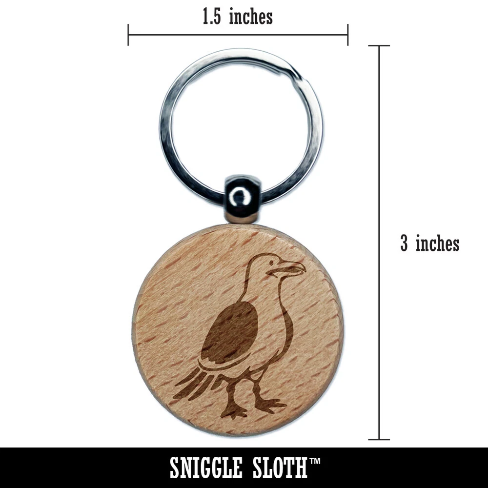 Standing Seagull Bird Engraved Wood Round Keychain Tag Charm
