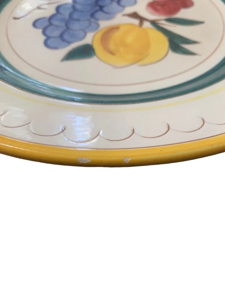 Stangl Pottery *Fruit* Pattern Charger / Serving Plate Size: 11" Round. Features & Accents: Yellow rim, Various fruits Handprinted in Center, Vintage 1966-1978. Made in Trenton NJ. ***I have several other Pieced in this pattern, check our ebay store for availability. We are happy to combine shipping when possible*** Condition. Pre owned, Vintage. Nice, Clean. Smoke Free Home. Same day shipping if purchased by 3:00 PM, EST. InternationalSales Ship through Ebay International Shipping Program. Free Returns. We truly try to disclose all information on items we list. However if we miss something, please contact us before leaving negative feedback and allow us to resolve the problem or issue a returns. Your choice. Thank you.