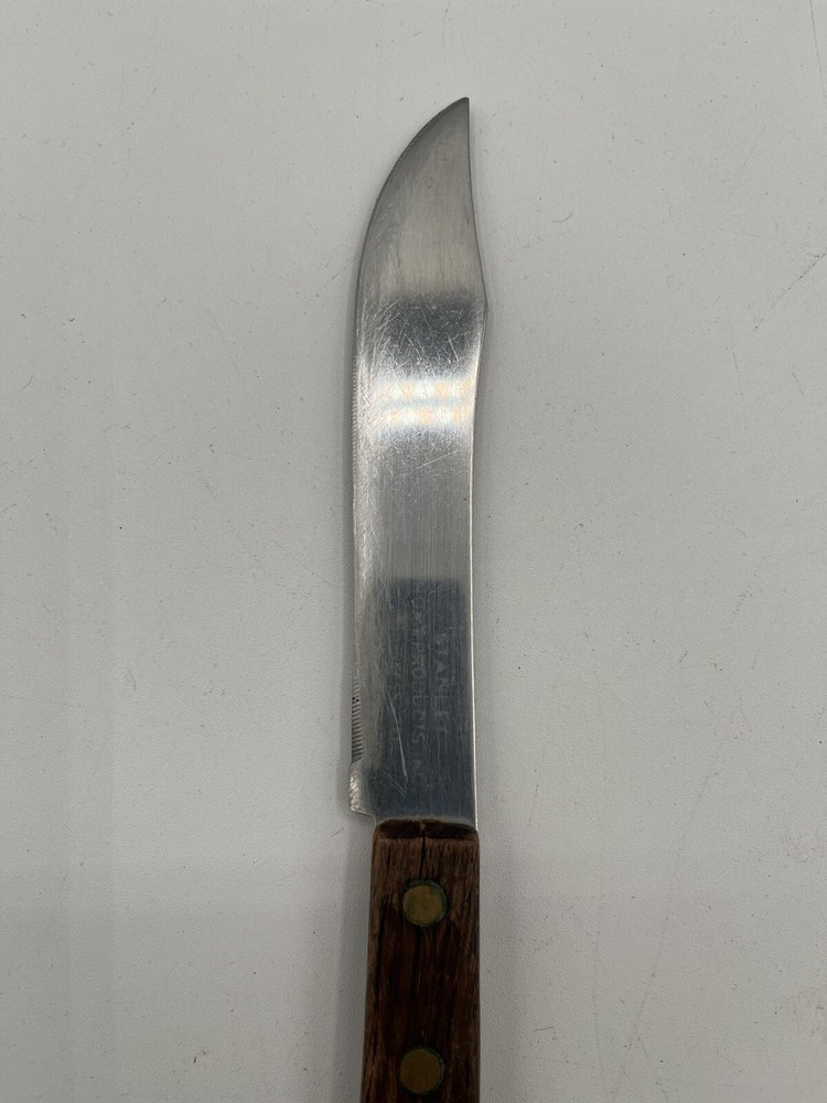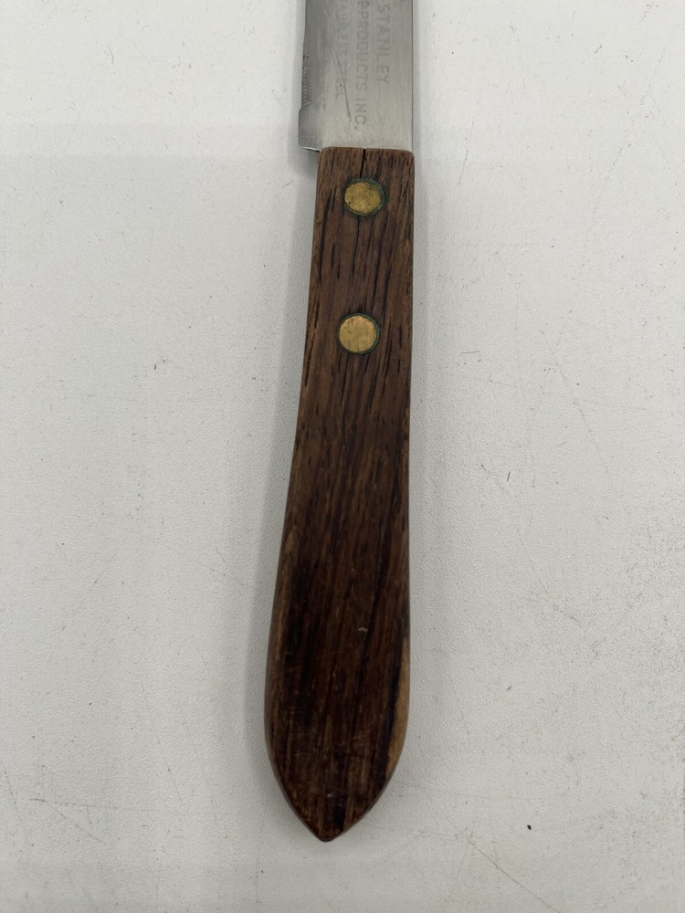 This Stanley Home Products Inc stainless steel knife is perfect for carving and slicing through meat with ease. With a blade length of 4.5 inches, this steak knife is designed for maximum efficiency and comfort. The knife is made from high-quality materials, ensuring durability and longevity. The knife is ideal for use in the kitchen or at the dinner table, and is suitable for a variety of meats. The handle is designed for a comfortable grip, and the knife's brand and type are sure to impress. Whether you're a professional chef or just enjoy a good steak, this knife is a must-have addition to your collection.