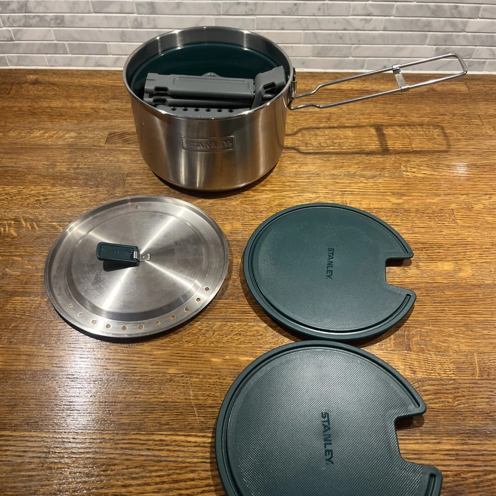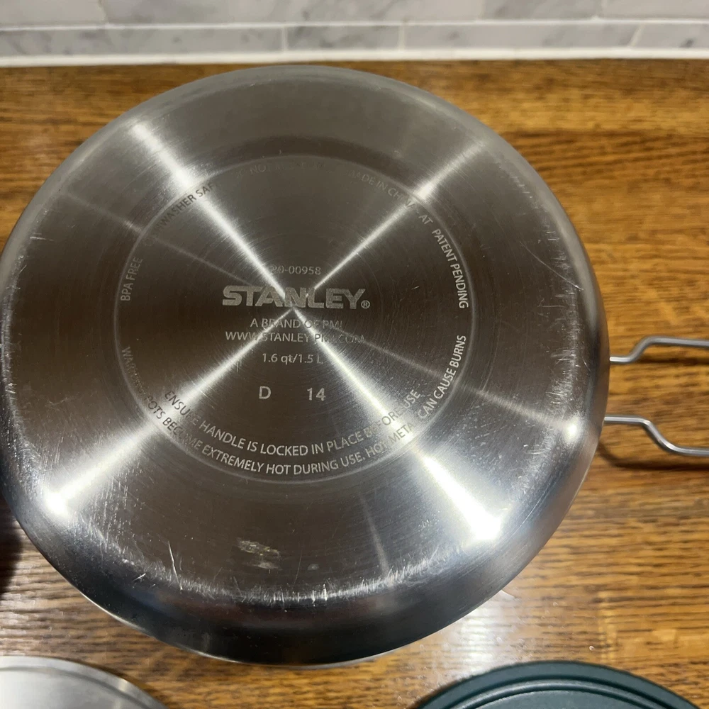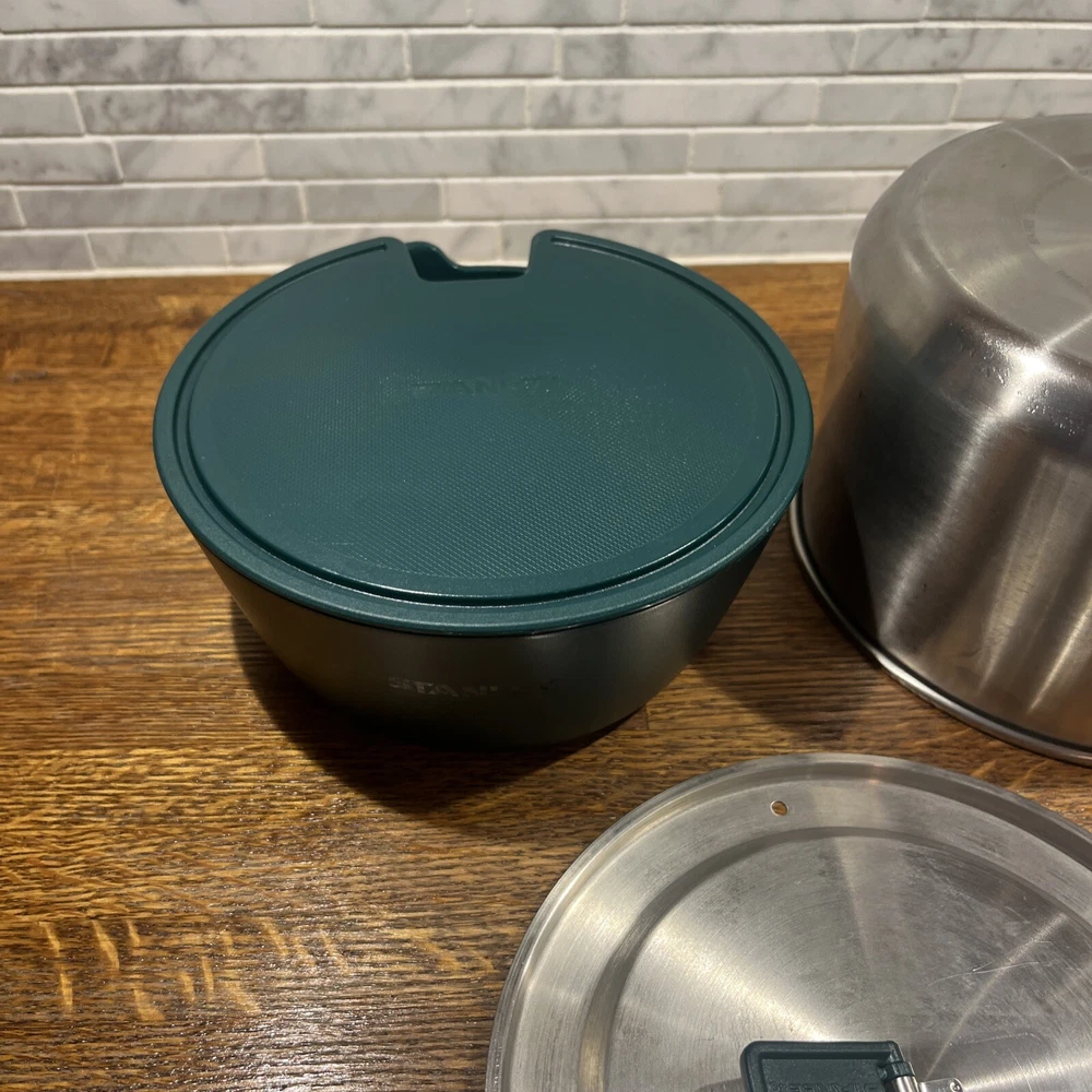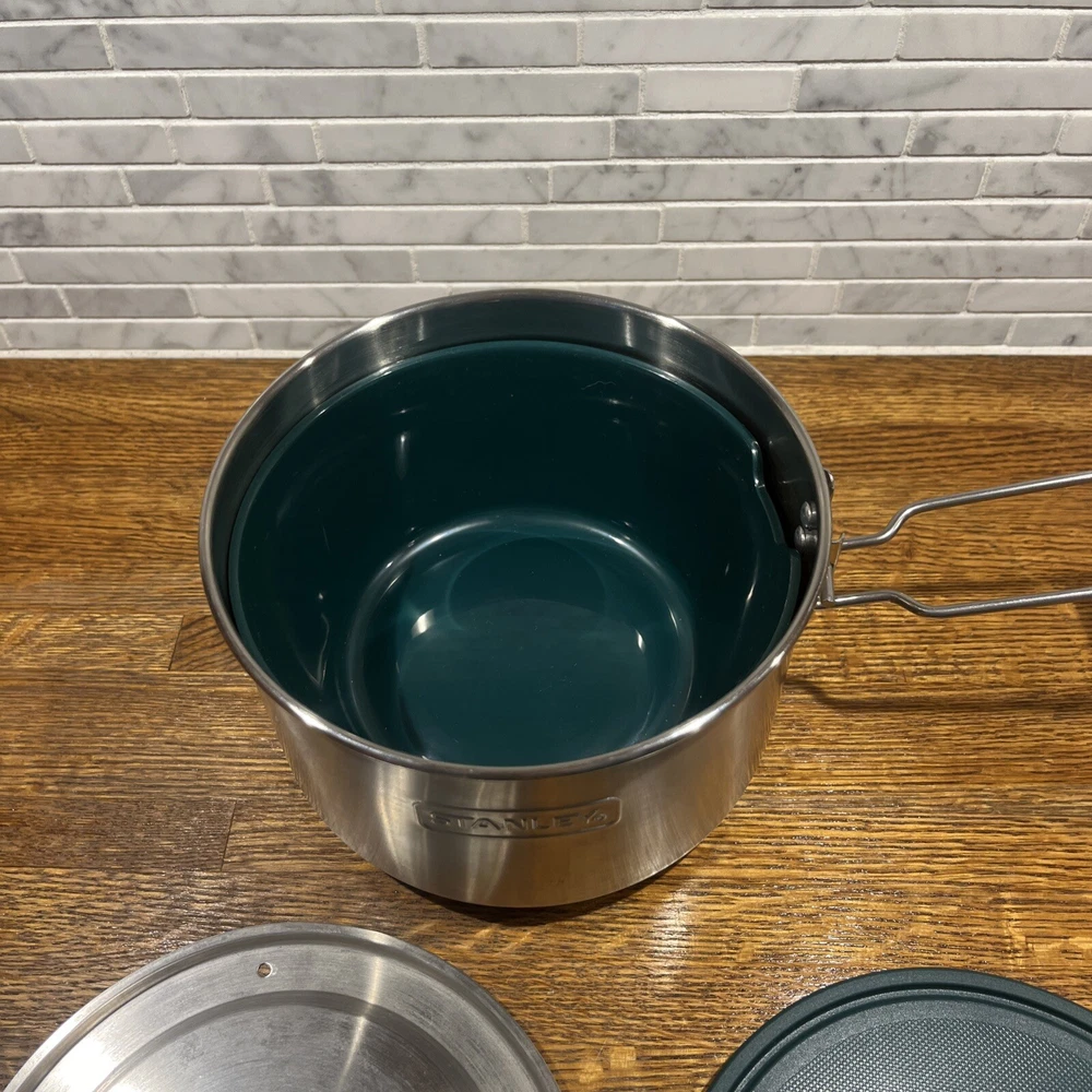 Enjoy your outdoor adventures with the Stanley Camping Cook Set Mess Kit. This 8-piece set includes a 1.6qt/1.5L stainless steel pot pan with bowls and lids, ladle and spatula. perfect for cooking up delicious meals while camping or tailgating. The set features BPA-free materials and is dishwasher safe for easy cleaning. The Stanley Camping Cook Set Mess Kit is designed with durable stainless steel and is perfect for any outdoor activity. With a 4" item height, this cook set is easy to carry and includes all the necessary items for cooking. Get ready for your next camping trip or tailgate party with this amazing cook set.