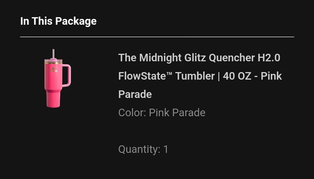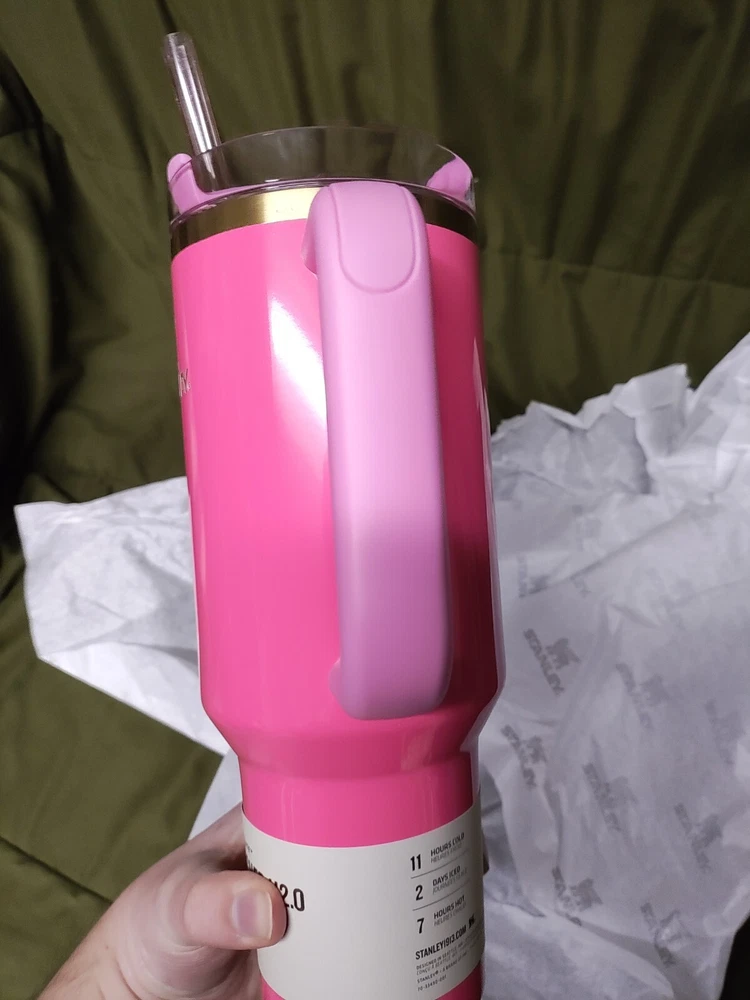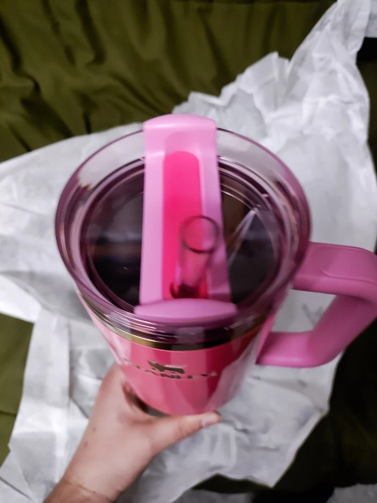 Features: Handle, Insulated, With Straw Material: Stainless Steel Model: The Midnight Glitz Quencher H2.O FlowState ™ Type: Tumbler Color: Pink Brand: Stanley Set Includes: Straw