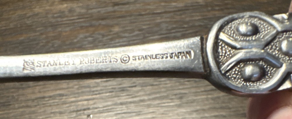 Item Length: 6.25 Inches Country/Region of Manufacture: Japan Country of Manufacture: Japan Color: Black UPC: Does not apply Brand: Stanley Roberts Finish: Glossy Care Instructions: Hand Wash Only gtin13: Does not apply Type: Flatware Handle Pattern: All-Over Pattern: Lancelot Set Includes: Spoon Brand Line: Crown Occasion: All Occasions Department: Adults, Boys, Girls, Kids, Teens Material: Stainless Steel Handle Material: Stainless Steel