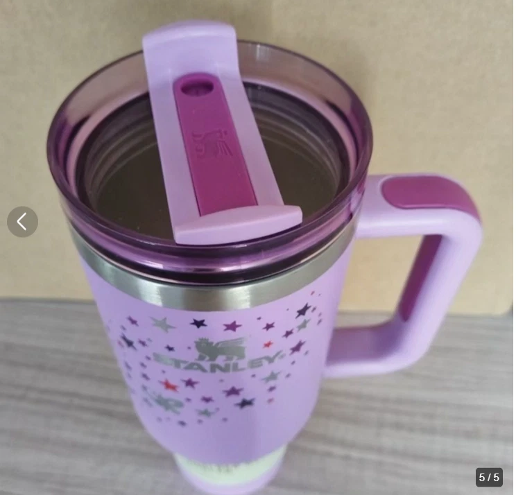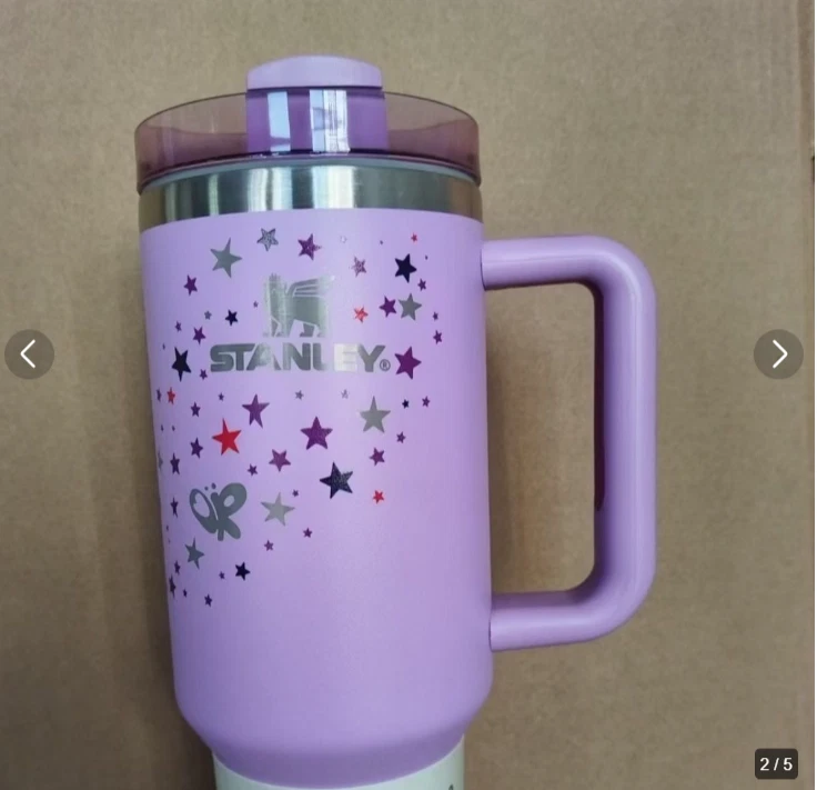 Features: Decorated, Handle, Insulated Glassware Type: Travel Mug Brand: Stanley Material: Stainless Steel Color: Purple Occasion: All Occasions, Anniversary Model: Olivia Rodrigo Theme: Bottle, Celebrity, Food & Drink Type: Tumbler Personalize: No Character: Olivia Rodrigo