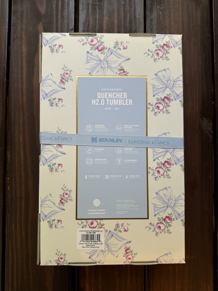 Brand New, 100% Authentic. Original Packaging. The Stanley X LoveShackFancy Holiday Quencher | 20 OZ - Rosa Beaux Blue Ships USPS Priority