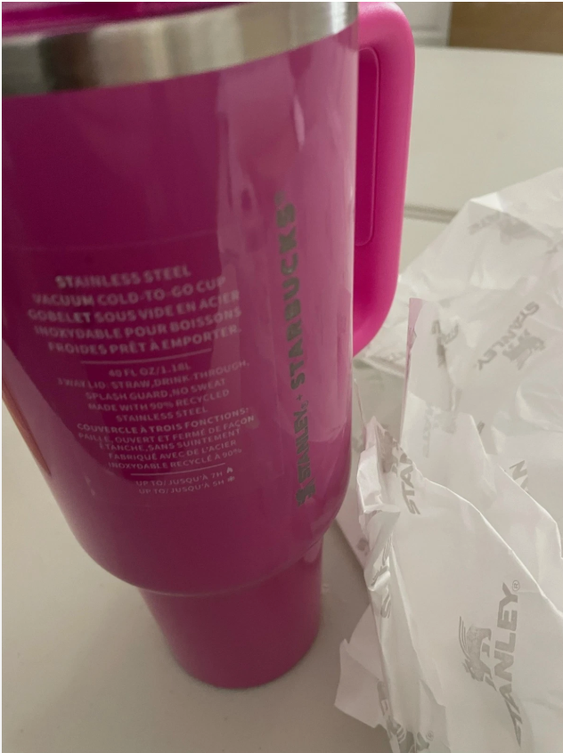 Stanley x Starbucks Berry Pink Glitter Tumbler – 40 oz Experience style and functionality with this limited-edition Stanley x Starbucks Berry Pink Glitter 40 oz Tumbler . Designed with a beautiful berry-pink finish and subtle glitter accents, this tumbler stands out while keeping your drinks perfectly hot or cold for hours. Features: Limited Edition Collaboration – Exclusive Stanley x Starbucks release. 40 oz Capacity – Holds plenty of your favorite beverages for all-day hydration. Berry Pink Glitter Design – Stylish, eye-catching, and perfect for daily use or gifting. Double-Wall Vacuum Insulation – Keeps drinks hot or cold for extended periods. Durable Stainless Steel – Built to last and resist wear. Comfort-Grip Handle – Easy to carry wherever you go. Splash-Proof Lid & Straw – Convenient for travel, work, the gym, and home. Fits in Most Car Cup Holders – Take it on the go with ease. Condition: Brand new, sealed, and 100% authentic.