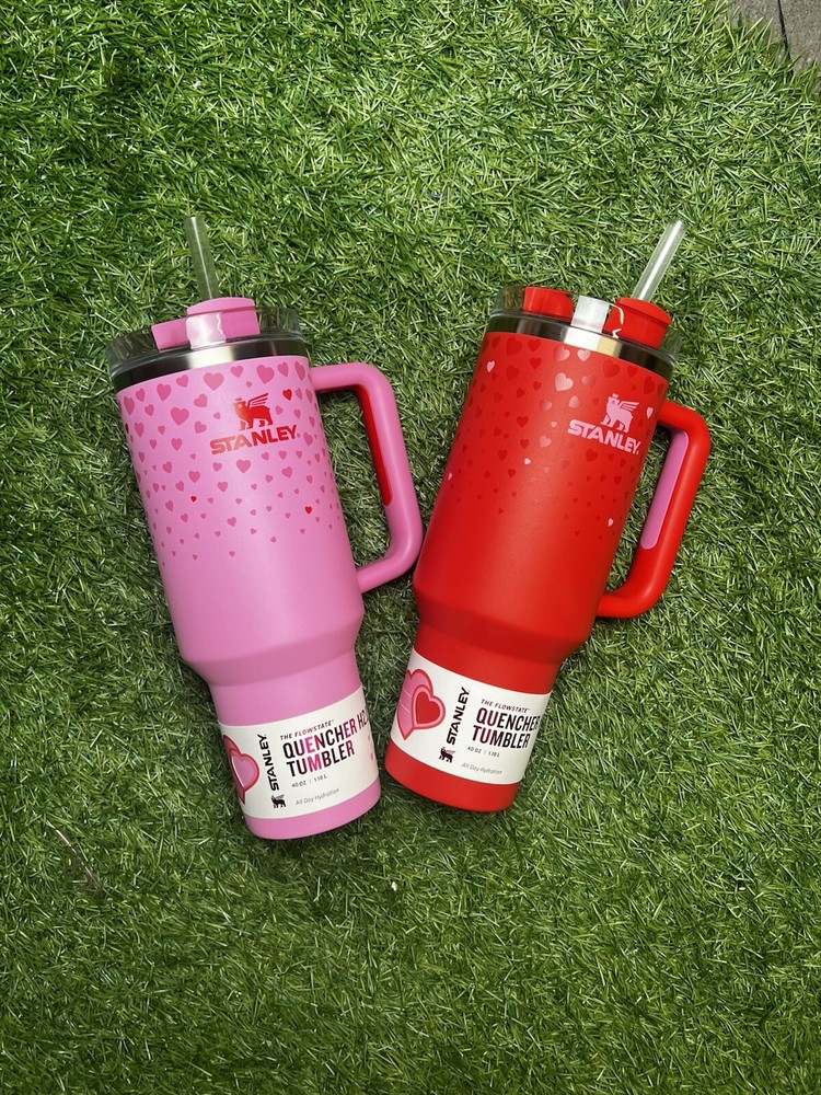 Glassware Type: Tumbler Material: Stainless Steel Color: Red Features: Handle, With Straw Set Includes: Straw Brand: Stanley Shape: Heart Pattern: Hearts Theme: Valentines Type: Tumbler Occasion: Valentine's Day