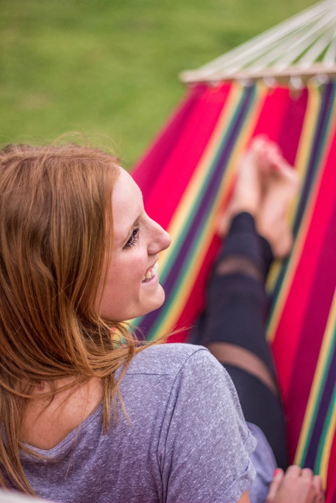 Product details Our Bahamas Cotton Blend Hammock is the perfect way to find yourself in comfort in your outdoor space. This cool cotton blend hammock cradles you for a relaxing experience. It measures in at 37” x 78” and generously supports up to 250 lbs. The hardwood spreader bars make sure the hammock lays flat at all times, and assures you will not be “cocooned”. The bright colors give it an authentic Caribbean flair! Grab a book and a blanket and swing the day away in our Bahamas Cotton Blend Hammock! Cool Cotton Blend Gracefully Cradles User For A Relaxing Experience Bright Caribbean Colors Hardwood Spreader Bars Dimensions: 78" x 37" Weight Limit: 250 lbs Can Be Used With Stansport Tree Straps (#31005-Not Included) And The Deluxe Hammock Stand (#31120-Not Included)