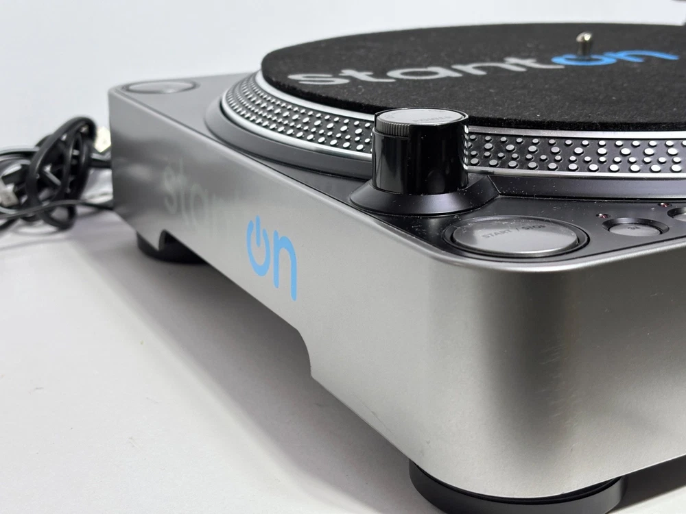 The Stanton T.55 USB Belt Drive DJ Turntable is a high-quality home turntable designed for enthusiasts of vinyl records. Its USB connectivity allows for easy conversion of vinyl records to digital format, making it a convenient option for anyone looking to preserve their music collection or share their favorite songs online. With the reputable Stanton brand behind it, this turntable is sure to deliver exceptional sound quality and performance for all your DJing and music listening needs. Very Good overall condition works well, new needle installed, Comes with power cable, USB Cable & RCA Cable. See video of it in Action!