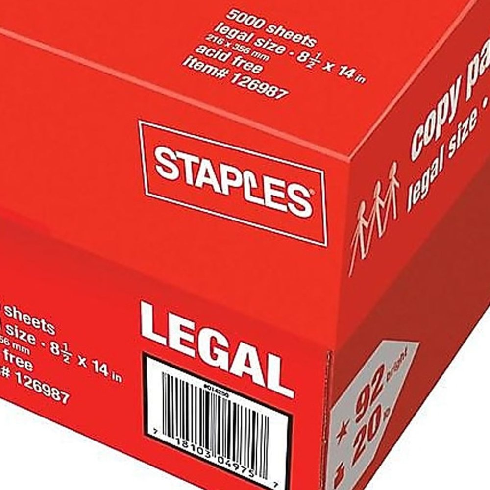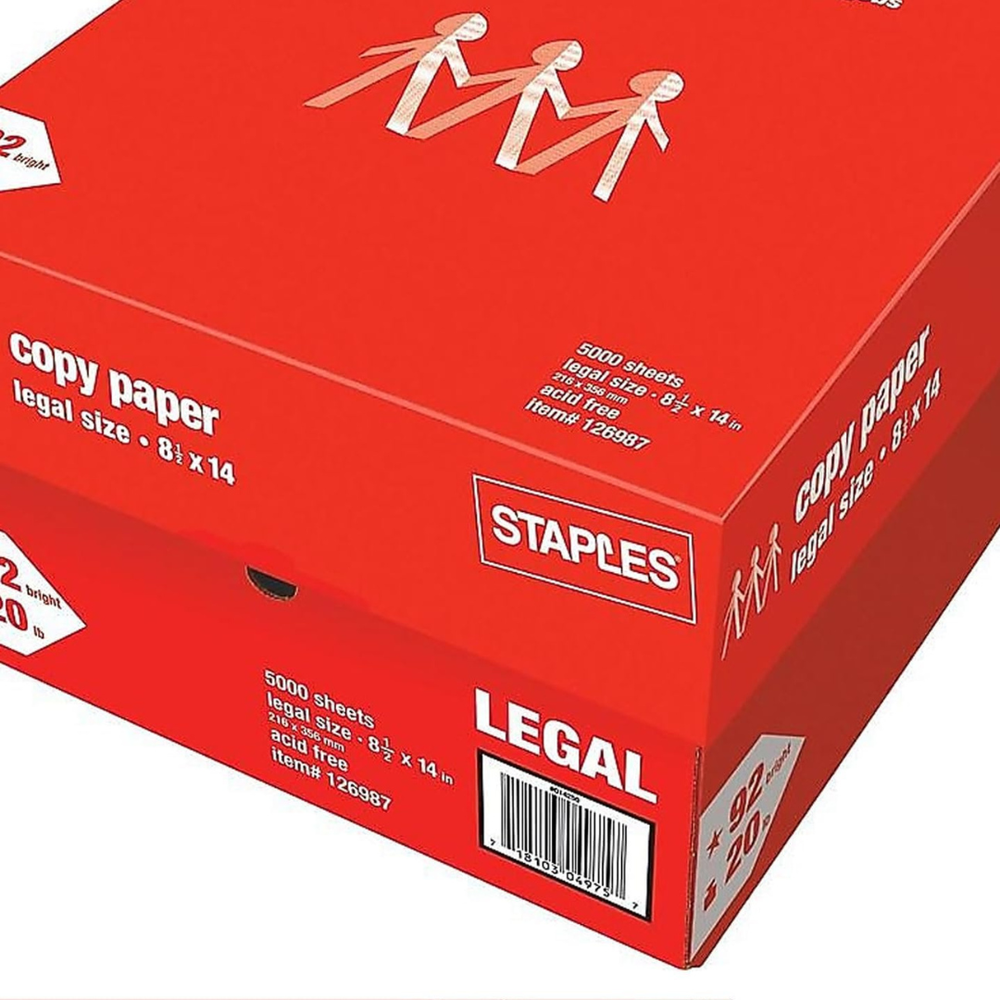 SHIPPING & CUSTOMER SERVICE INFORMATION π¦ β We ship from the USA within 5β15 business days. β Free Shipping β Free Returns β Money Back Guarantee β No extra fees, no import tax β the price you see is the final price! If you see any message asking you to pay import taxes, please ignore it . Rest assured that all costs are already included in the listed price. π« We do not ship to warehouse addresses or PO boxes , as this may result in lost packages. Please provide a valid residential or business address. π If you experience any issues with your order, please contact us directly via eBay message. β οΈ Do not open a dispute β once a case is opened, we are unable to assist. Direct communication allows us to resolve your issue faster and more effectively. Thank you for shopping with us! Feel free to reach out anytime if you have questions. Staples Copy Paper, 8.5" x 14", 20 lbs., White, 500 Sheets/Ream, 10 Reams/Carton (221193) Staples 8.5-Inch x 14-Inch Copy Paper 20 lbs. 92 Brightness 500/Ream 10 Reams/CT Brand STAPLES Color White Item Weight 66.5 Pounds Paper Finish Matte Sheet Size 8.5-Inch X 14-Inch About this item Sold as 5000/Carton. Reliable copy paper is perfect for everyday use Paper dimensions: 8.5"W x 14"L Paper weight: 20 lbs. Brightness rating of 92 for sharp, clear print results Product description 8.5" x 14" Copy Paper Reliable copy paper is perfect for everyday use Staples copy paper is an ideal option for busy businesses that need crisp, sturdy pages for work and customer forms. This legal-size copy paper is a versatile addition to your business and can be used for a variety of purposes, including memos, letters and feedback forms. Shipped in a convenient box with a lid, this paper is easy to keep in storage closets or stack up to make the most out of compact office space. Heavyweight durability. This copy paper features a 20-pound mix that is sturdy enough to withstand travelling around the office without ripping or wrinkling. The paper is durable to ensure important documents and forms stay readable and in pristine condition, while remaining lightweight enough to work with standard printers. Bright color featuring a 92 brightness rating, this white copy paper ensures ink shows up clearly, no matter what you print. Copy & Multipurpose Paper Paper prevents from crumbling or yellowing Brightness rating of 92 for sharp, clear print results The ideal size for printing legal documents and contracts, giving your printouts a professional look
