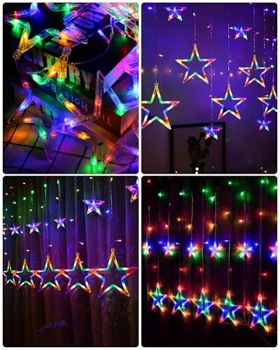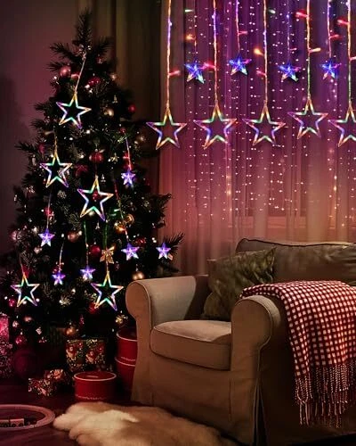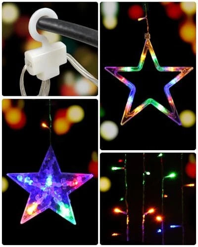 Star Curtain Lights 138 LED 12 Star Christmas Lights 8.2 Ft Multicolor