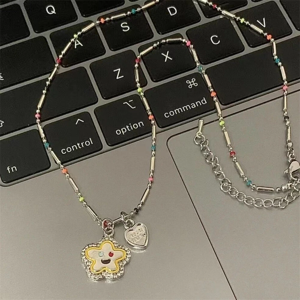 Star Tassel Choker Necklace Layered Y2k Jewelry Pink Love Heart For Women Smile Flower Sexy Fashion Charm Necklaces Description: Material: Alloy Processing Technology: Electroplating Shape: Geometric Chain Style: Clavicle Chain Circumference: 31cm-40cm Style: Niche Applicable People: Women Features: 1. Selected High-quality Materials And Exquisite Workmanship. 2. Simple Style, Showing Temperament. 3. It Can Be Used For Daily Commuting And Going Out On The Street, And Has An Easy Concave Shape. 4. It Can Be Used As A Fashionable Matching Item For Shopping Or Dating. 5. Comfortable To Wear, Not Prone To Allergies, Resistant To Discoloration, And Can Be Worn For A Long Time. Package Included: 1*necklace