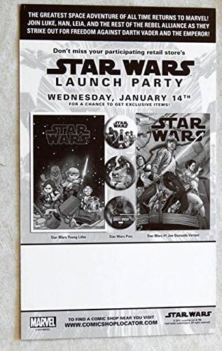 Dive into the epic saga that has captivated audiences for decades with the Star Wars #1 Comic Launch Party Promotional Card. Produced by Marvel Comics in 2014, this rare piece celebrates the launch of the highly anticipated comic book series, STAR WARS. Featuring the iconic character Luke Skywalker and the distinguished work of artist and writer John Cassaday, this 7 in X 4.5 in card is a must-have for enthusiasts and collectors alike. Crafted in the United States, this dealer incentive card is a testament to the modern age of comics. It's a vibrant, color piece that reflects the enduring allure of the Star Wars universe. With its limited edition status and first printing feature, it stands as a contemporary collectible that belongs in the repertoire of any serious Star Wars or comic book aficionado. These cards were a Comic Book Retail Dealer Incentive sent out by the distributor to stores that were having a Star Wars #1 launch party in their store. The card was sent out to the store's major customers. I did not send out my cards, so they remained wrapped. S HOP WITH CONFIDENCE, enjoy FAST 24 hour processing and EXPERT Packaging to insure SAFE Delivery! -- This is a brand new Promo Card shipped to me directly from the Distributor. It has never been on a store shelf, I am the only owner. It is graded 9.8. Near Mint. NOTE: MY PHOTO INCLUDES BOTH THE FRONT OF THE CARD AND THE BACK OF THE CARD...THE LISTING IS FOR ONE CARD ONLY, YOU WILL RECEIVE ONLY ONE CARD.