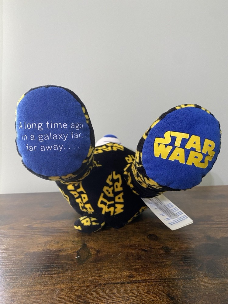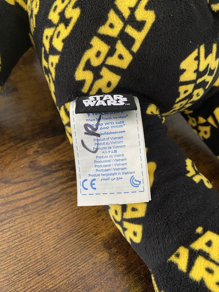 RARE LIMITED Build a Bear Star Wars Themed Teddy 16in. Stuffed Plush Black with Yellow Star Wars print and B.A.B. Branded paw print logo. See pictures for initials on tag
