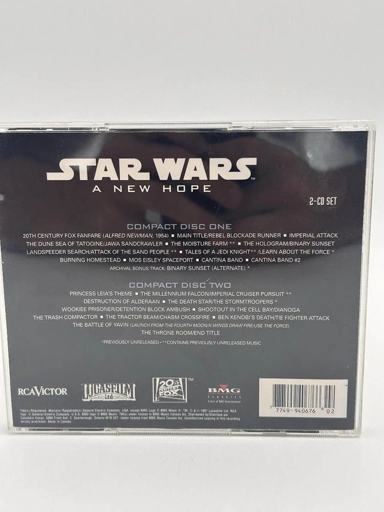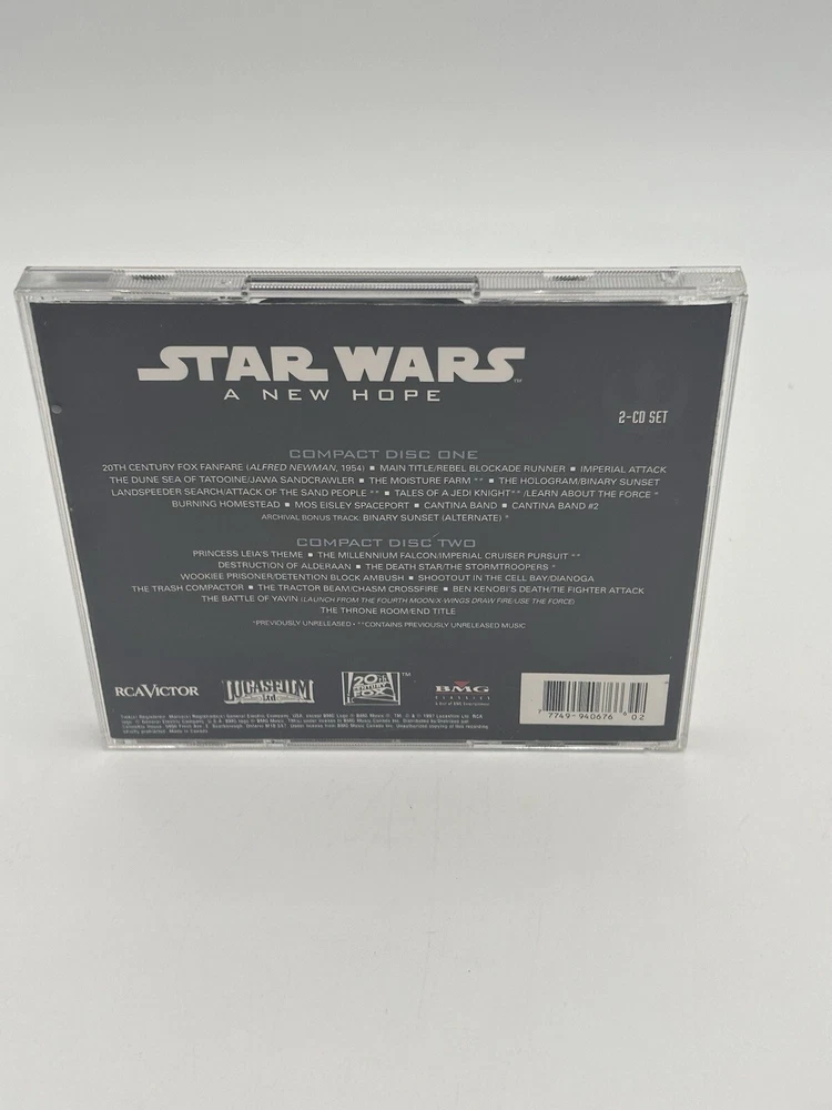 Experience the legendary music of Star Wars: A New Hope with this Special Edition soundtrack CD. Featuring the acclaimed compositions of John Williams, this Special Edition captures the essence of the iconic 1977 film with enhanced sound quality. Perfect for collectors and fans, this CD includes the classic tracks that have defined the Star Wars universe. Features: Title: Star Wars: A New Hope Special Edition Soundtrack Composer: John Williams Format: CD Condition: [Specify condition – e.g., "Brand New" or "Used, Excellent Condition"] Label: Lucasfilm/20th Century Fox Tracks: Includes all original tracks from the 1977 film Special Features: Special Edition with enhanced sound quality and packaging Why You’ll Love It: Immerse yourself in the epic sound of Star Wars with this Special Edition soundtrack. John Williams’ unforgettable score, including the iconic “Main Title Theme” and “The Force Theme,” is presented with improved audio quality. This CD is a must-have for any Star Wars fan and an essential addition to your collection. Shipping Information: Handling Time: Ships within 24 hours. Returns: 30-day return policy. Buyer pays return shipping. Buy with Confidence: Feedback Rating: 100% Positive Feedback Customer Service: Very quick to respond to any questions or concerns.