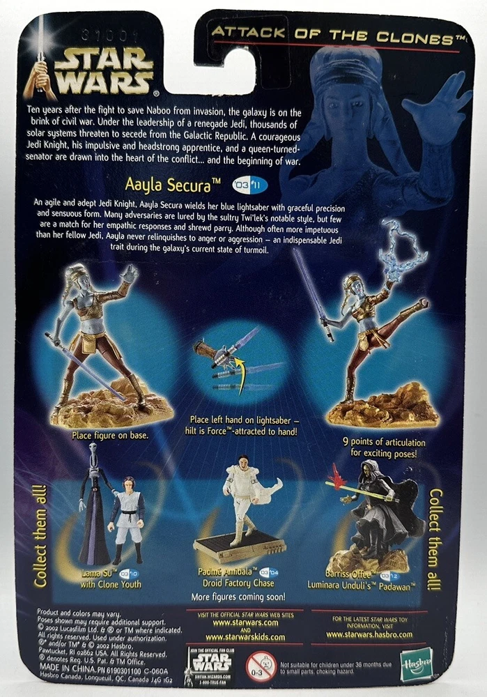 This Star Wars Attack of the Clones Aayla Secura Action Figure by Hasbro is a must-have for any Star Wars fan. The multicolor plastic figure is in great shape, with a grade of 95+, and comes boxed for safekeeping. It features the beloved Jedi Knight character from the Star Wars: Episode II – Attack of the Clones movie and the Star Wars: The Clone Wars TV show. The figure is an original, licensed reproduction from 2002 and is part of the The Clone Wars series. It is a vintage item and was manufactured during the 2000-2009 time period. The animator doll model is perfect for collectors and fans alike, and is sure to be a hit at any Star Wars Celebration event.