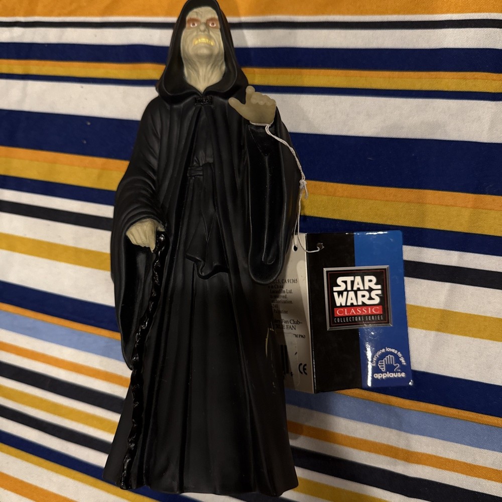 The Star Wars Classic Collectors Series Vinyl Emperor Palpatine 9 inch figure from 1995 is a vintage collectible item inspired by the iconic character from the Return of the Jedi movie. Made of vinyl and produced by Applause, this item is part of the Classic Collectors series, making it a sought-after piece for Star Wars collectors. With its science fiction and horror genre theme, this collectible brings a touch of nostalgia and authenticity to any Star Wars memorabilia collection, showcasing the intricate details and design of Emperor Palpatine from the beloved franchise.