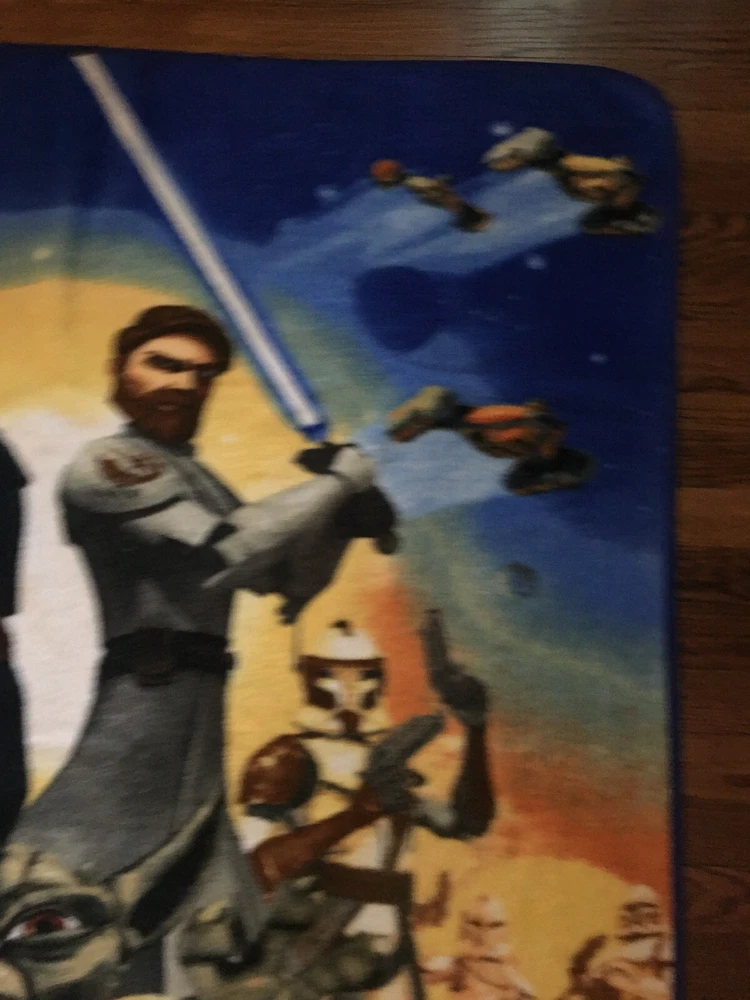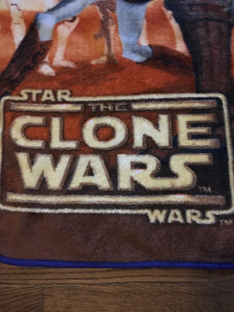 Star Wars Clone Wars Microfleece Blanket Throw 52" x 61" Anakin Skywalker Blanket is preowned but in great condition, no stains or tears and is still not washed out. Feel free to ask any questions about this item, all of our items come from a smoke free environment.