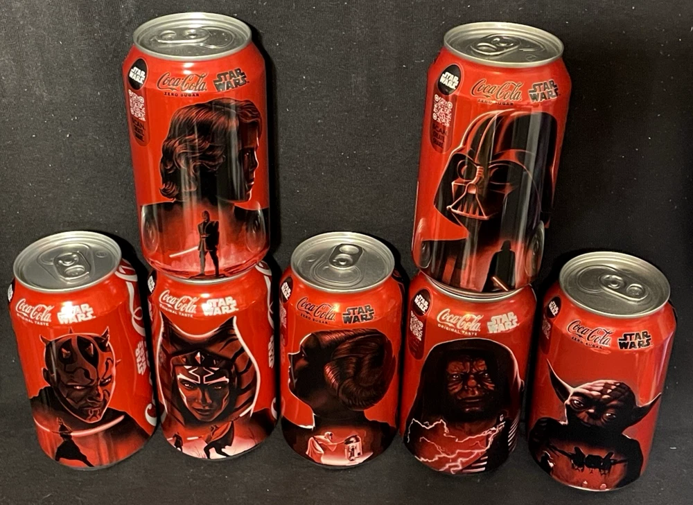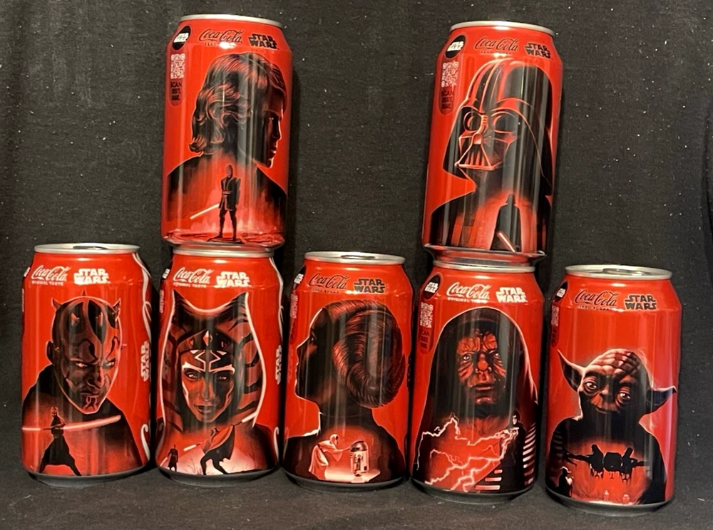 The Star Wars Coca-Cola 2025 Set 7 Can Collection is a one-of-a-kind collector’s item showcasing favorite characters from the Star Wars universe. Designed for the Star Wars Refresh Your Galaxy event, this limited-edition set features sealed Coca-Cola cans with images of Darth Vader, Darth Maul, Palpatine, Anakin Skywalker, Princess Leia, Yoda, and Ahsoka Tano. Made in the USA, this exclusive collection is perfect for any Star Wars fan or sci-fi enthusiast. Supplies are limited, and once sold out, they’re gone for good. Don’t miss your chance!