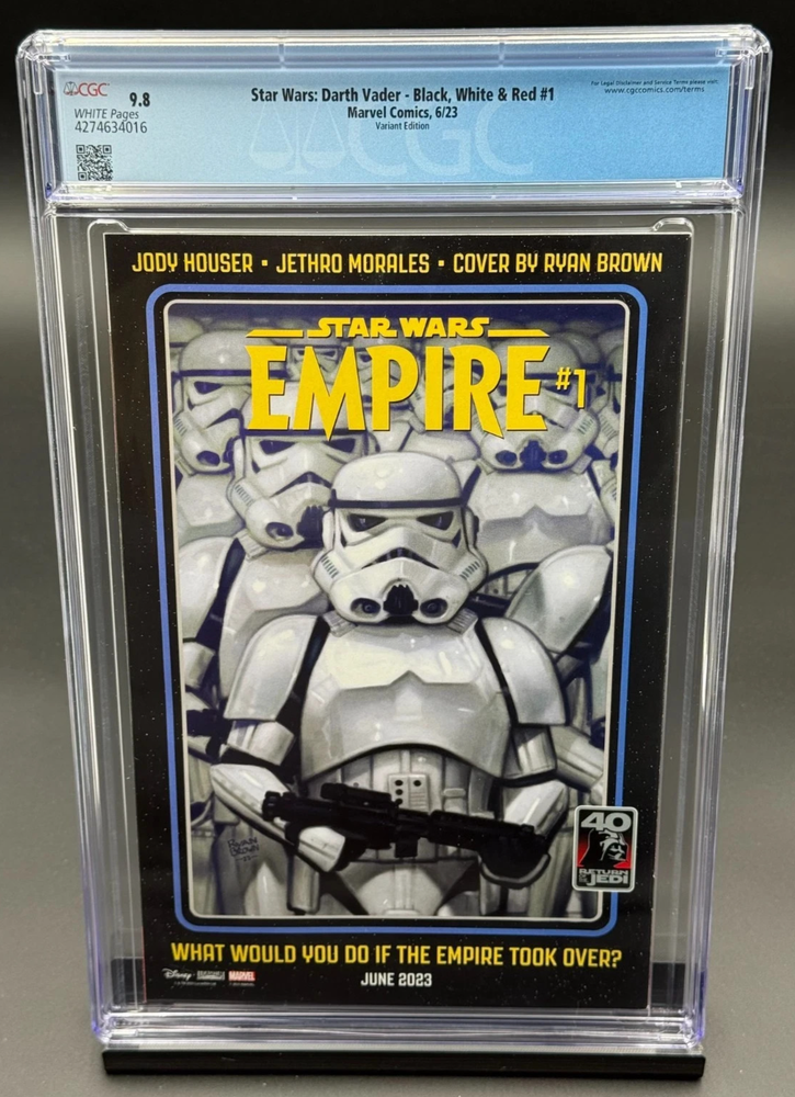 The product is a highly collectible Star Wars comic book featuring the iconic character, Darth Vader. This single issue, graded at 9.8 Near Mint/Mint, is part of the Black, White, and Red series with stunning artwork by Gabriele Dell'Otto. Published by Marvel Comics in 2023, this modern age comic book is a must-have for any fan of the Star Wars universe. Made in the United States, this comic book is a rare find for collectors looking to add a unique piece to their collection.