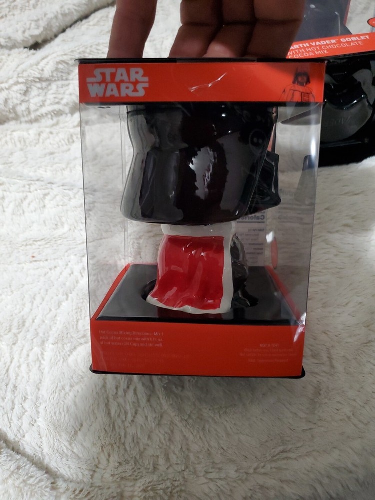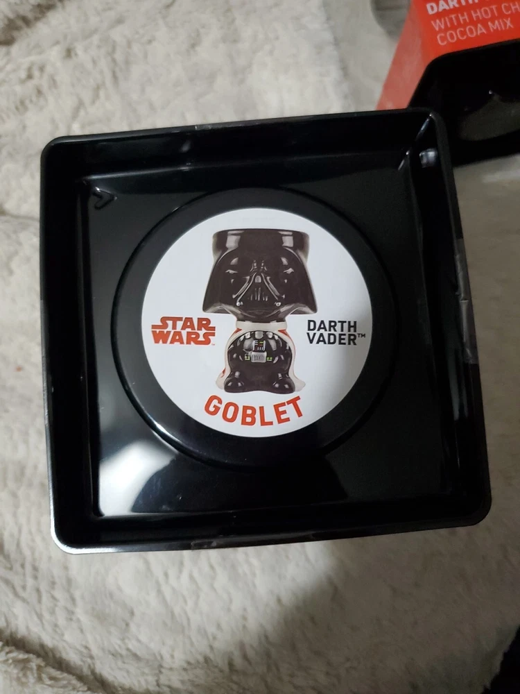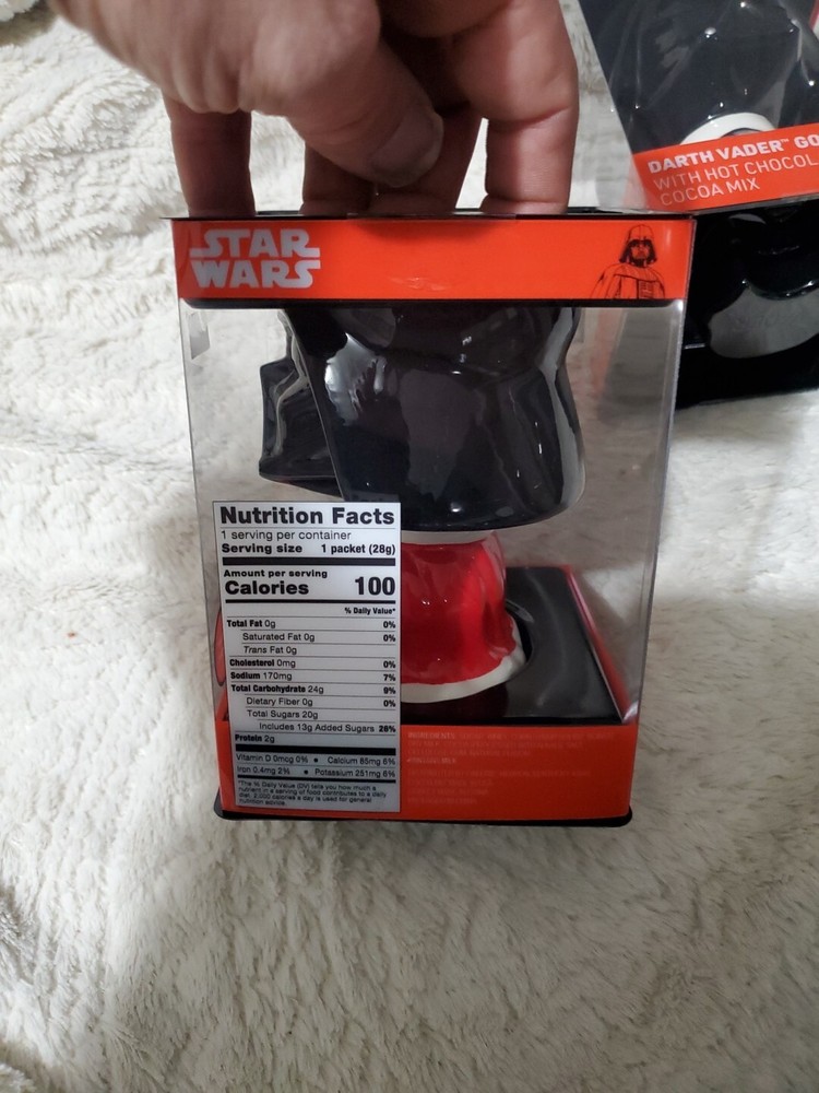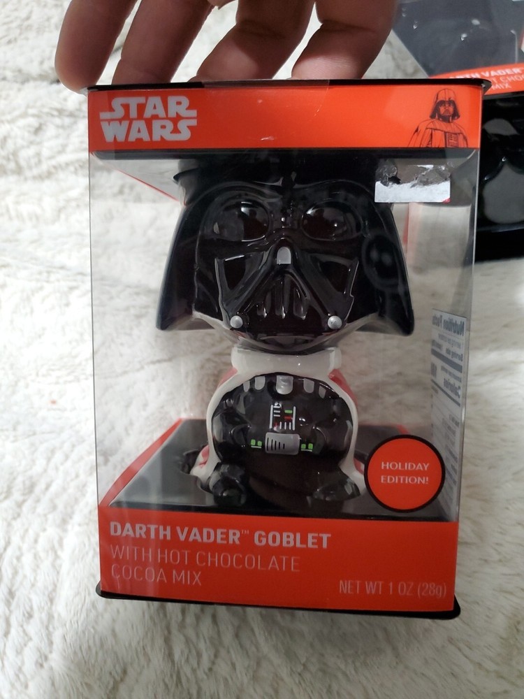 Darth Vader ceramic goblet with hot chocolate cocoa mix. holiday edition