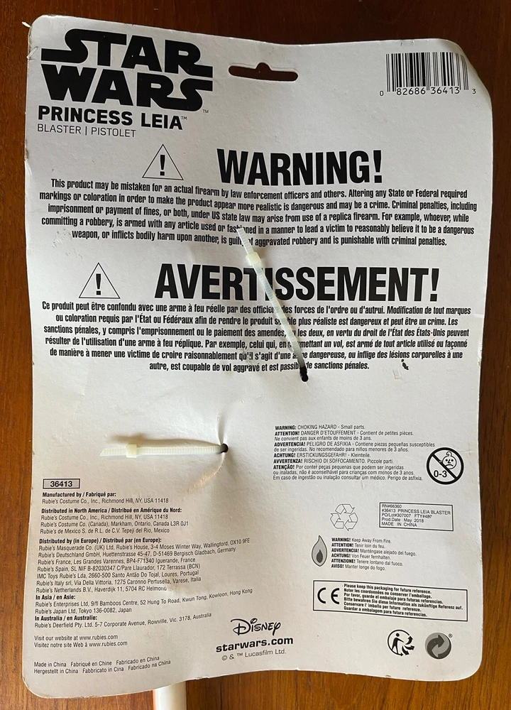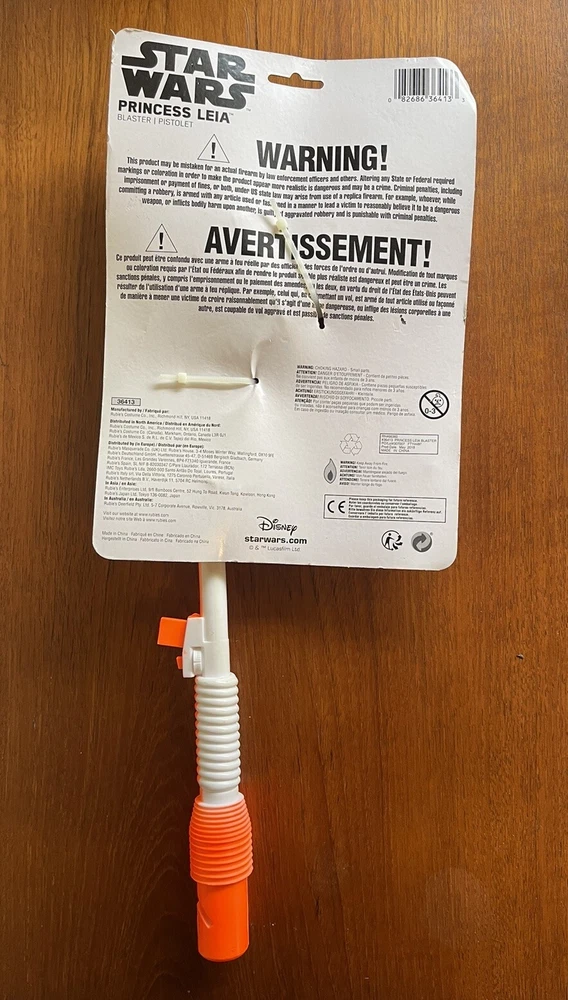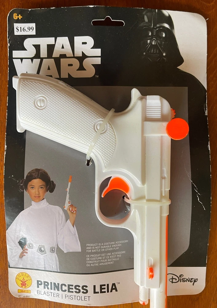 Add some intergalactic fun to your cosplay or Halloween Costume with this Princess Leia Blaster toy gun costume accessory. Perfect for any Star Wars fan, this toy gun is designed with a “safety first” white and orange color scheme, and features intricate form & details that make it stand out. Whether you're dressing up for a costume party or just want to add some flair to your next Comicon outfit, this toy gun is the perfect addition. Made for Didney ny Rubie’s Costume Co., this Star Wars collectible is a must-have for any fan. Don’t Skip! Get your hands on this increasingly rare costume accessory today! Please view all photos to confirm unopened & unused New Old Stock quality & condition. Thanks for looking!