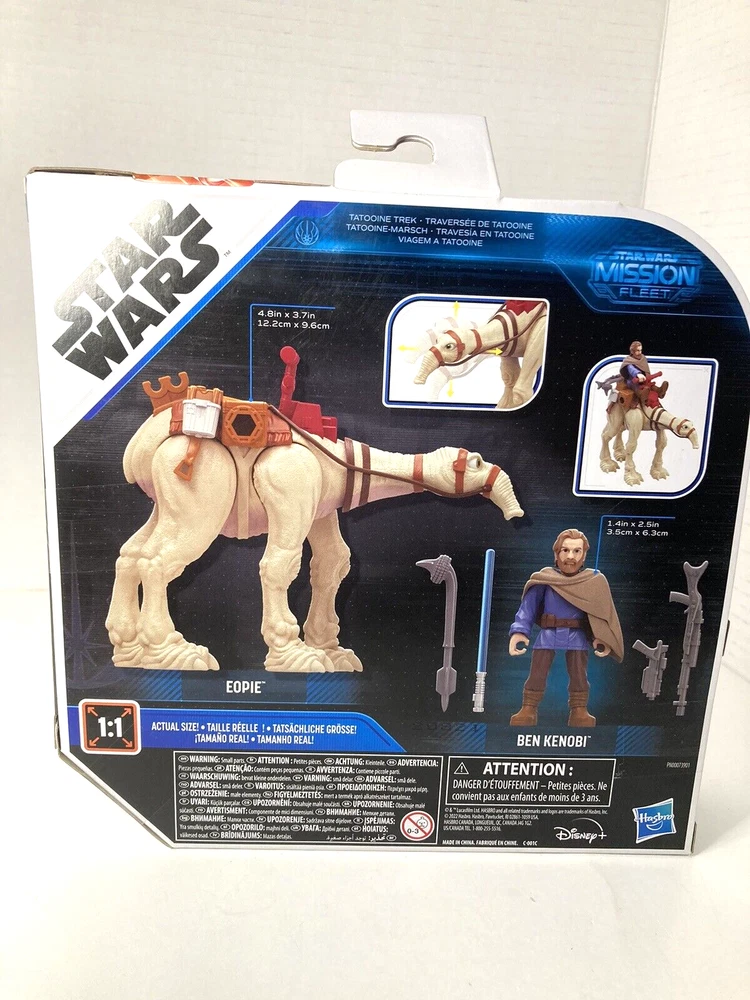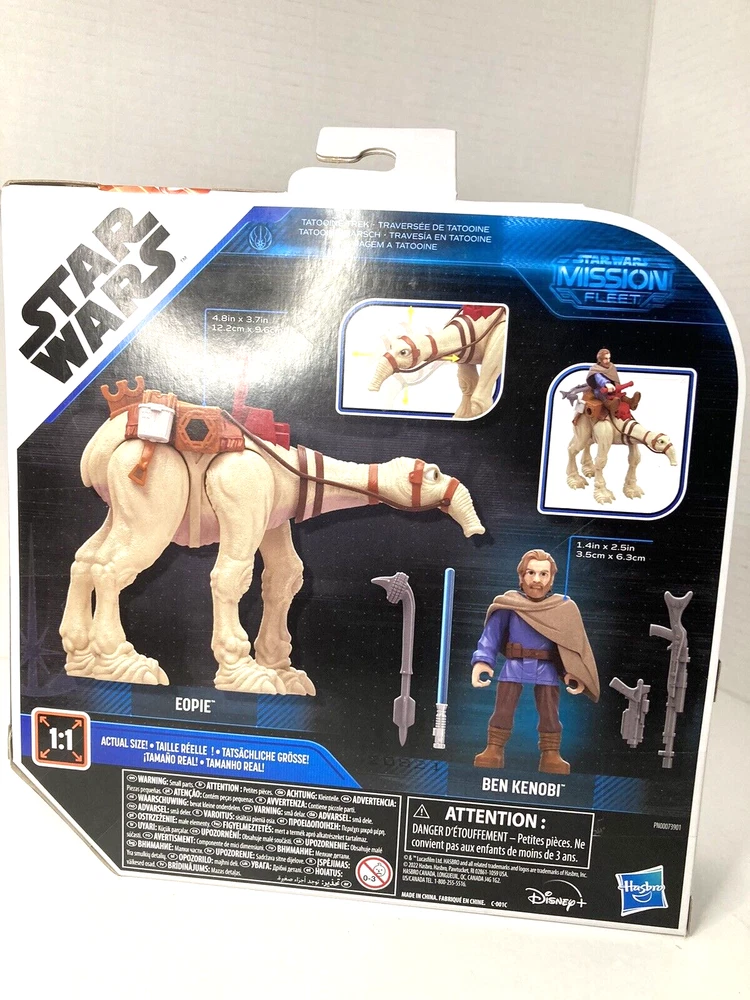 Transport yourself to a galaxy far, far away with this Star Wars Mission Fleet Ben Kenobi And Eopie Tatooine Trek Figure. The highly detailed figure set includes Ben Kenobi, a legendary Jedi Master, and Eopie, a loyal mount that will take you on an epic adventure across the desert planet of Tatooine. The figures come in their original, unopened packaging and are perfect for collectors or fans of the Star Wars franchise. With exquisite features and clothes, this figure set is perfect for children aged 4+ and adults alike. The multicolor plastic figures are part of the Star Wars Mission Fleet product line, and are an original, licensed reproduction from the hit TV show Obi Wan Kenobi. Don't miss out on this amazing opportunity to own a piece of Star Wars history and join the mission!