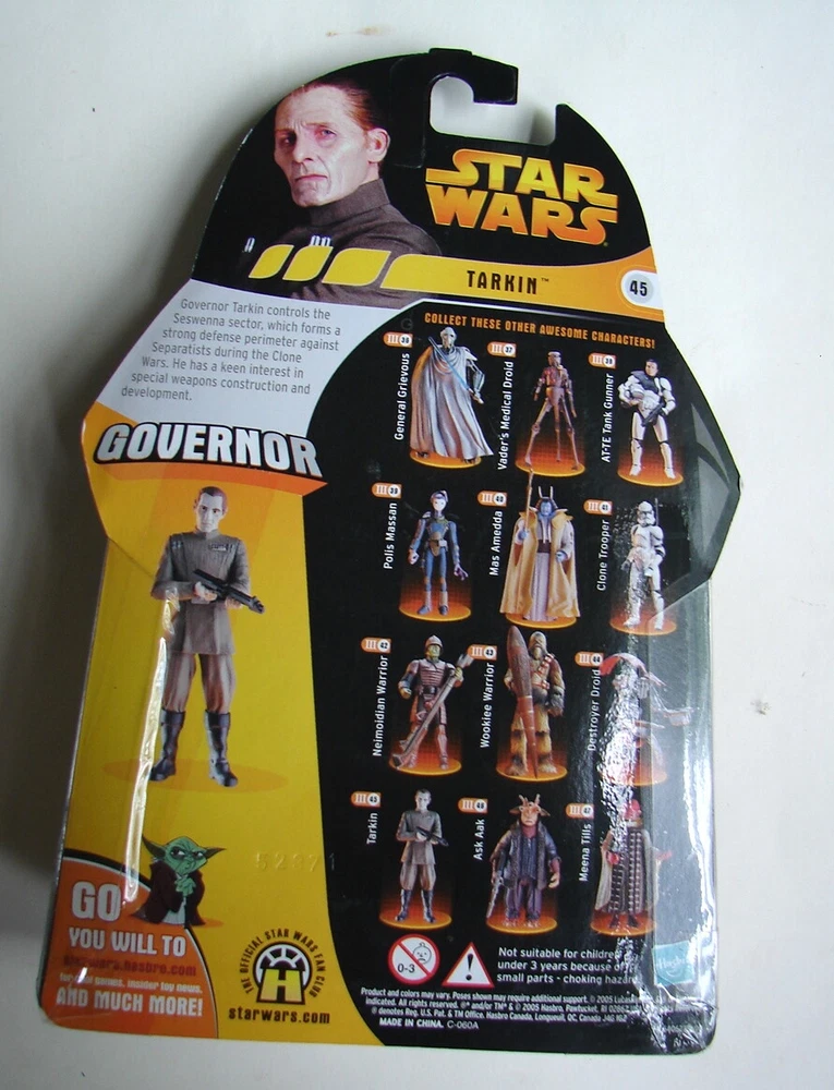 Star Wars ROTS Tarkin COMPLETE mint on card card in good shape , minimal shelf storage wear. see other POTF, POTJ, SAGA ,30th, ANN, space ships , rare figures, carded old- new vintage and original star wars figures in my store,. Check out my other items ! see other Star wars stuff in store I gladly combine shipping . when applicable. Be sure to add me to your favorites list ! Sign up for my email newsletters by adding my eBay Store to your Favorites NOTE:....Some Items in my store contain stock photo of item.(Usually newer MIP action figures, some comic books, books CD's etc) If you have specific detail questions please ask before purchase ........... Terms of sale: All payments due in 7 days payments not received in 7 days void all rights to mdse. Payment can be made directly thru CC or other arranged terms. items shipped by USPS or UPS within 7 days and usually FRIDAYS unless special shipping required. I reserve the right to alter shipping method. All Shipping Prices are subject to revision due to Final destination and shipping price increases. I reserve the right to refuse to ship to unconfirmed addresses and cancel sale. If you request immediate shipping contact me. I require $5.00 addtnl handling fee for RUSH same day as payment received shipping. INTL SHIPPING: IF YOU PAY BY PAYPAL YOU MUST USE A DEL CONFIRM SHIPPING SERVICE (Priority mail) OR agree waive use of paypal's item not received Claims service. By purchasing and choosing a non confirmation service (first class mail) you agree to these terms. This is EBAY policy, so please do not blame me for the high cost of shipping. If you desire First class mail please note EBAY/PAYPAL Requires sellers to ship PRIORITY MAIL, please note I will ship first class, but since this is not a trackable delivery option, you must waive your rights to file a claim if the item is not received.. Please understand this is Ebay/PAYPAL policy it is not my policy. Any returns or issues must be addressed to me within 24 hours of receipt of item. I reserve the right to void any purchase or transaction. All shipping includes handling fees, (Ebay takes near 20% of the sale and now of shipping in FVF/ fees) finally thank you. NOTE: I will ship figures and small items figures ,titanium loose ships, etc.. (all that fits in a 8"x5"x1.5" space) internationally using the new small rate priority BOX at a flat rate of $15.00 add $1.00 per item up to about 8 in the box. Any items or combined items over 4 lbs shipped internationally MUST go priority I will only ship items with values of $50 and above priority only unless terms are agreed to and confirmed by email. All items are sold as collectibles some items may not be suitable for small children robert NOTE: NEW Ebay POLICY TERMS take near 20 % fees then add 5.5 for paypal - totaling over 20% of of your payment including the shipping fees you paid. . We try to at least recoup the actual cost of shipping as part of our handling fee. - Some Items in my store contain stock photo of item. If you have specific detail questions please ask before purchase ============= :Checkout instructions Payment due in 7 days, and if it is not received in 7 days void your right to mdse. ALL US orders include FREE del. confirmation. Payment can be made directly thru CC or other arranged terms. items shipped daily by USPS or UPS International items ship within 7 days. I reserve the right to alter shipping method. All Shipping Prices are subject to revision due to Final destination and shipping price or fee increases. INTNL: If you USE PAYPAL you must use a receipt confirmed mail service. As always please request an invoice before payment- particularly if you are combining items.