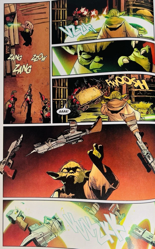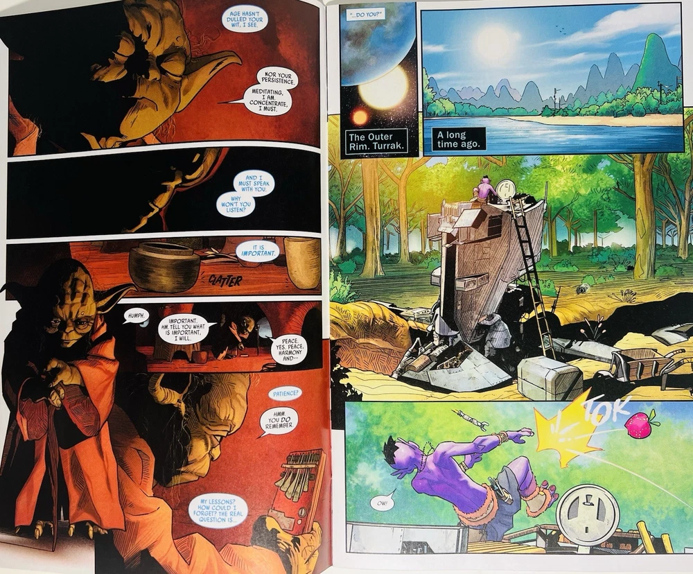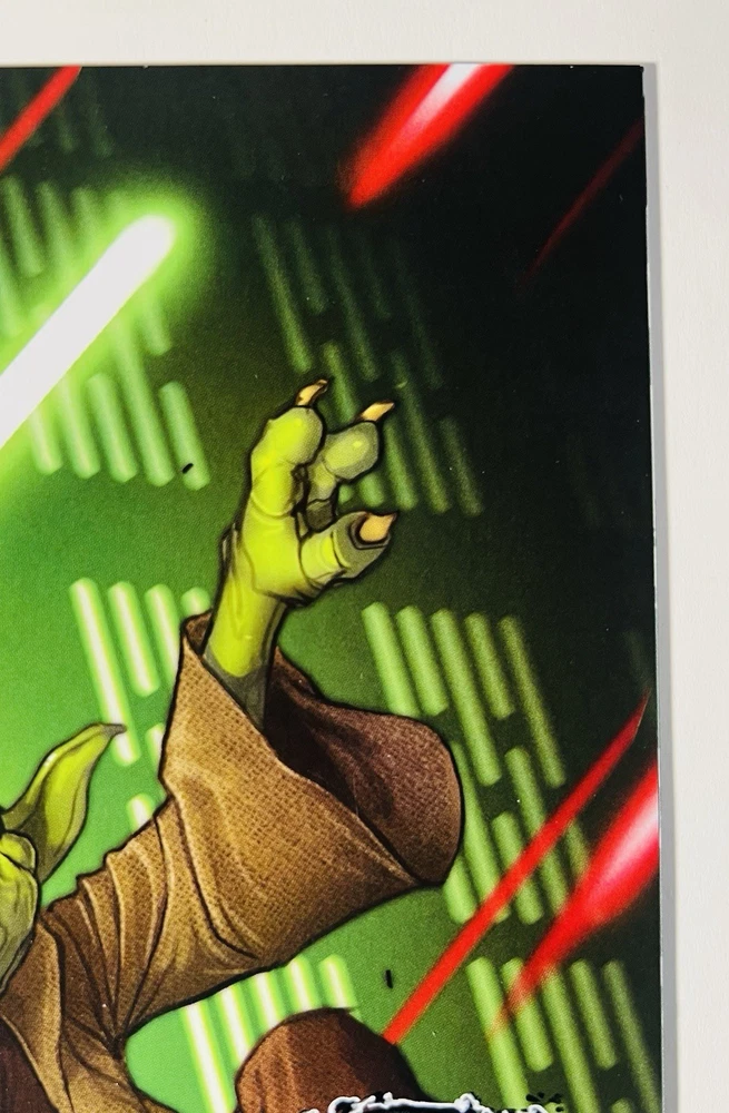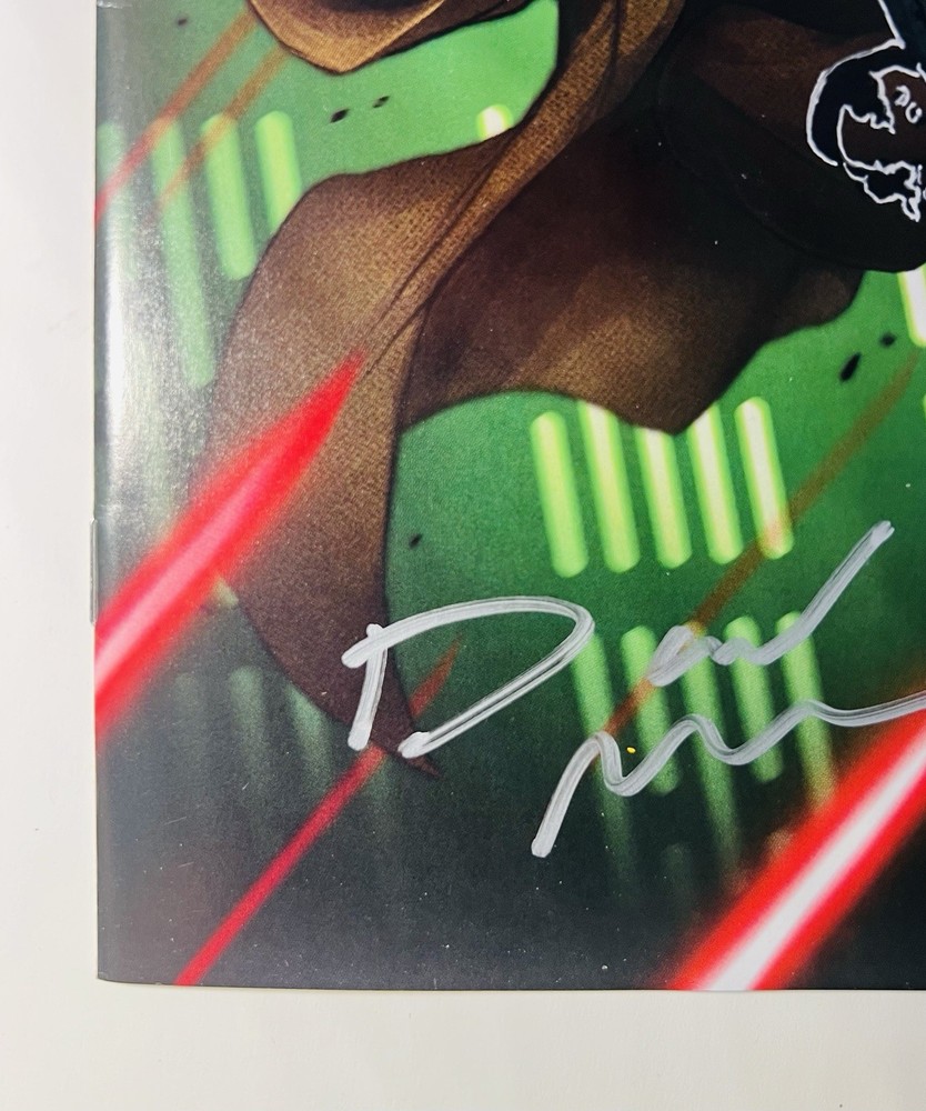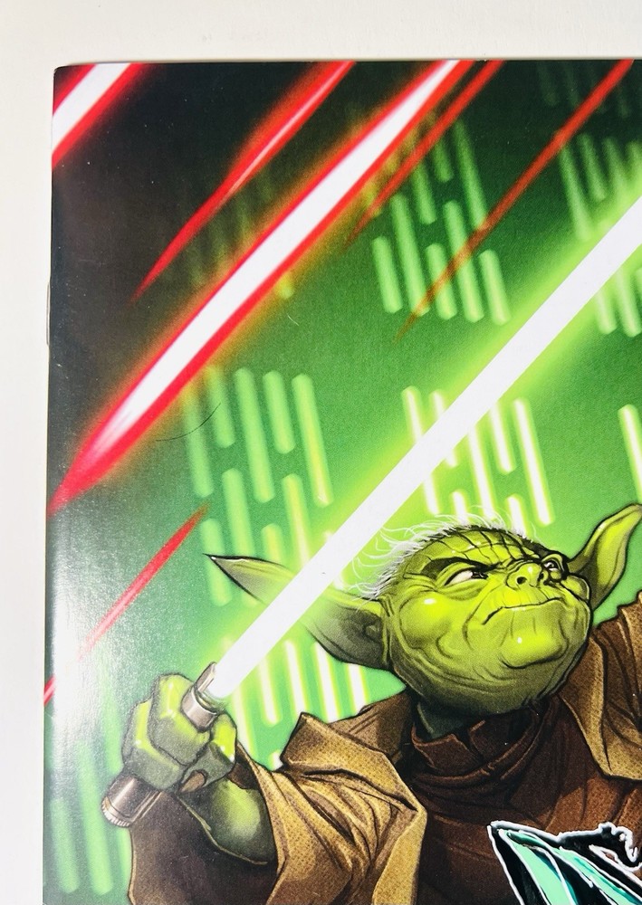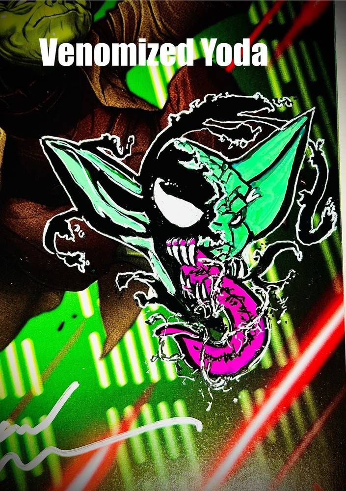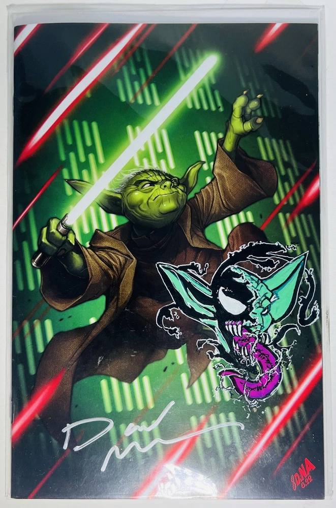 The product is a highly desirable Star Wars Yoda #1 retailer exclusive comic book signed by artist David Nakayama. This single issue features a variant cover with a COA included, making it a valuable collector's item for fans of the Star Wars universe. There is also a really cool Remarque of a venomized Yoda on the cover. Not sure if Nakayama did the remarque, but it’s a really cool addition nonetheless. With a modern age release date of 2023, this color comic book is a must-have for any general audience looking to delve into the world of science fiction through the iconic character of Yoda.