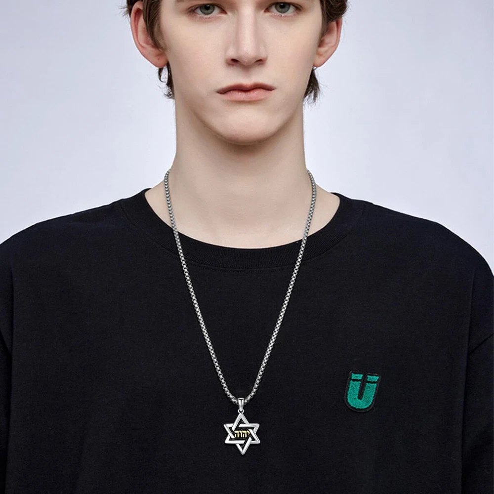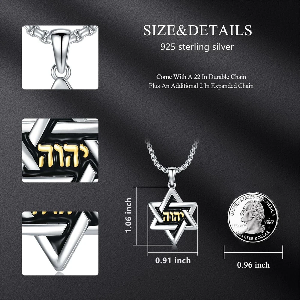 【】 ★is a totally new brand going to bring more mens jewelry to all. ★always desires to explore mens jewelry making area. ★designs with customers’ opinions and launch new ones most people love. 【Product】 ★Condition:Brand New Sterling Silver Chain Necklace for Men ★Color: Black/Gold/Silver ★Material: Comes in high quality 925 sterling silver material with an shiny protective finish. Tarnish-resistant then can't be tarnished in a long time. Lead free and hypoallergenic,safe to wear on your neck. ★The cool design goes well with any outfit in any occasions like WORK, DATING, DAILY, TRAVEL, SCHOOL, and it’s comfortable when wearing it. ★The color may be minor different from the picture because of the photograph. 【Note】 1) Suggest not direct with heat, or expose under the sun. 2) Before showering, take out the accessories and keep it in a safe place. 3) Avoid solvents or chemicals like perfume or soap. Dry it with a clean towel if gets wet. 4) Clean in a secure location, not the rim of a sink where a piece may slip down the drain. 5) Use only a soft brush, never sharp or hard objects, to remove dirt or particles. !!We hope you will be satisfied with our products. Please enjoy your shipping. 【FEATURES】: Cool Star of David Pendant Necklace with Name of God - יהוה! Perfect combination of the silver David Star, the gold Jehovah and the black enamel makes the pendant a great jewelry gift! Learn more about it! 【MATERIALS】: Made of high quality 925 sterling silver, plated in white and yellow gold, filled with black enamel to ensure long lasting finish that is lead-free, and hypoallergenic, very safe. Reduce concerns about sensitive skin and product quality. 【DETAILS】: Pendant measures 1.06’’*0.91’’. Stainless steel round box chain: 22+2 in long.Length ranges from 22 in to 24 in. Come with an easy wearing lobster clasp. Suitable for all kinds of clothing style! 【GIFT IDEAS】: It is packaged in a gift box for easy gift-giving, a perfect gift for him, her, husband, wife, friend, son daughter, mom and dad. Suitable for Birthday, Valentine's day, Christmas, Father's day, Mother's day, Anniversary, Party, Graduation or any occasions. 【】: 100% SATIXFACTION and 30-day MONEY BACK . Please us at any time if you have received an unsatisfactory product. We will respond within 24 hours to resolve the issue. Enjoy shopping at Brand!