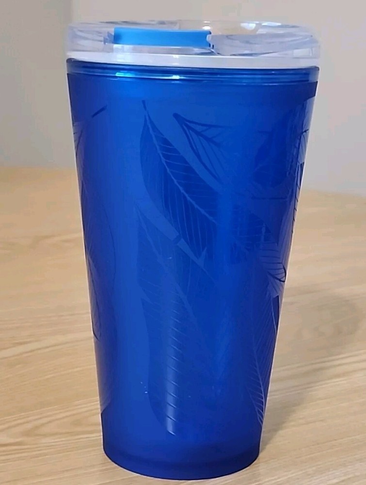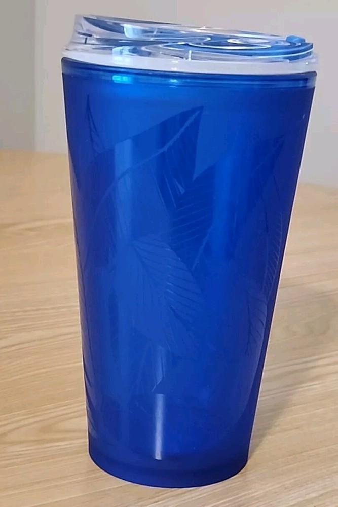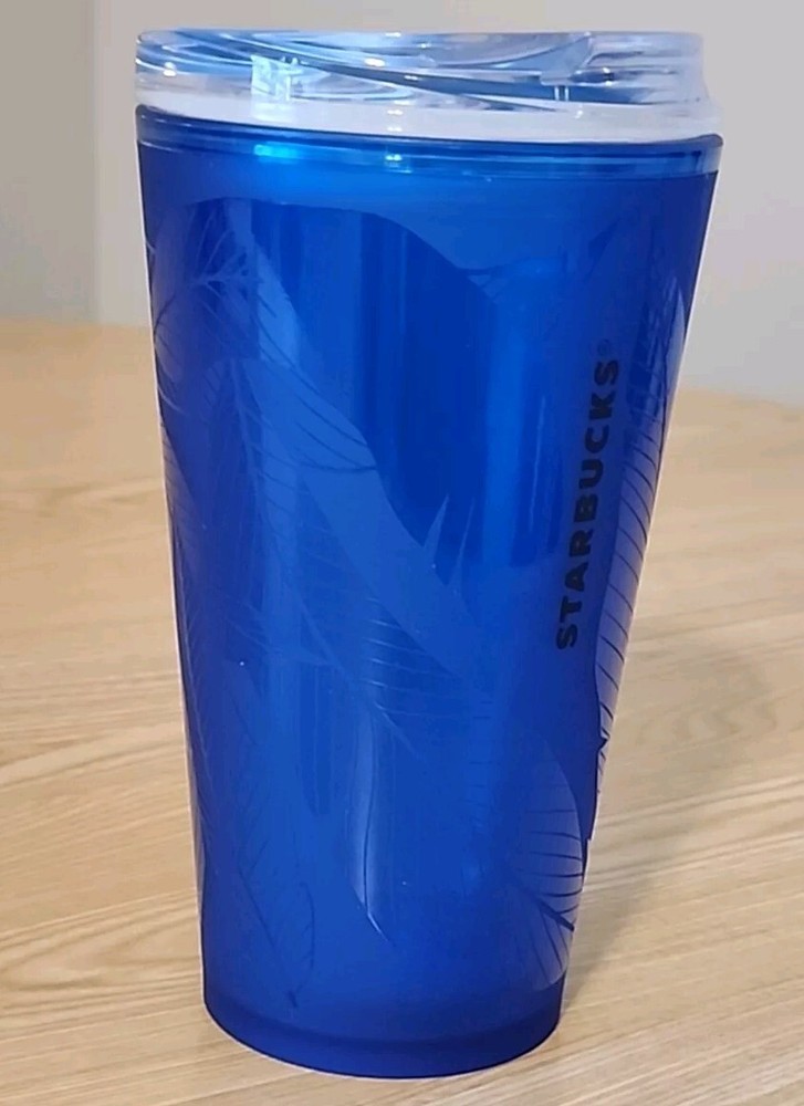 Starbucks Blue Feather Design Tumbler For Cold Beverages Screw on Clear Lid 16 oz NEW Pictures are considered part of the description and condition. Please review all photos.