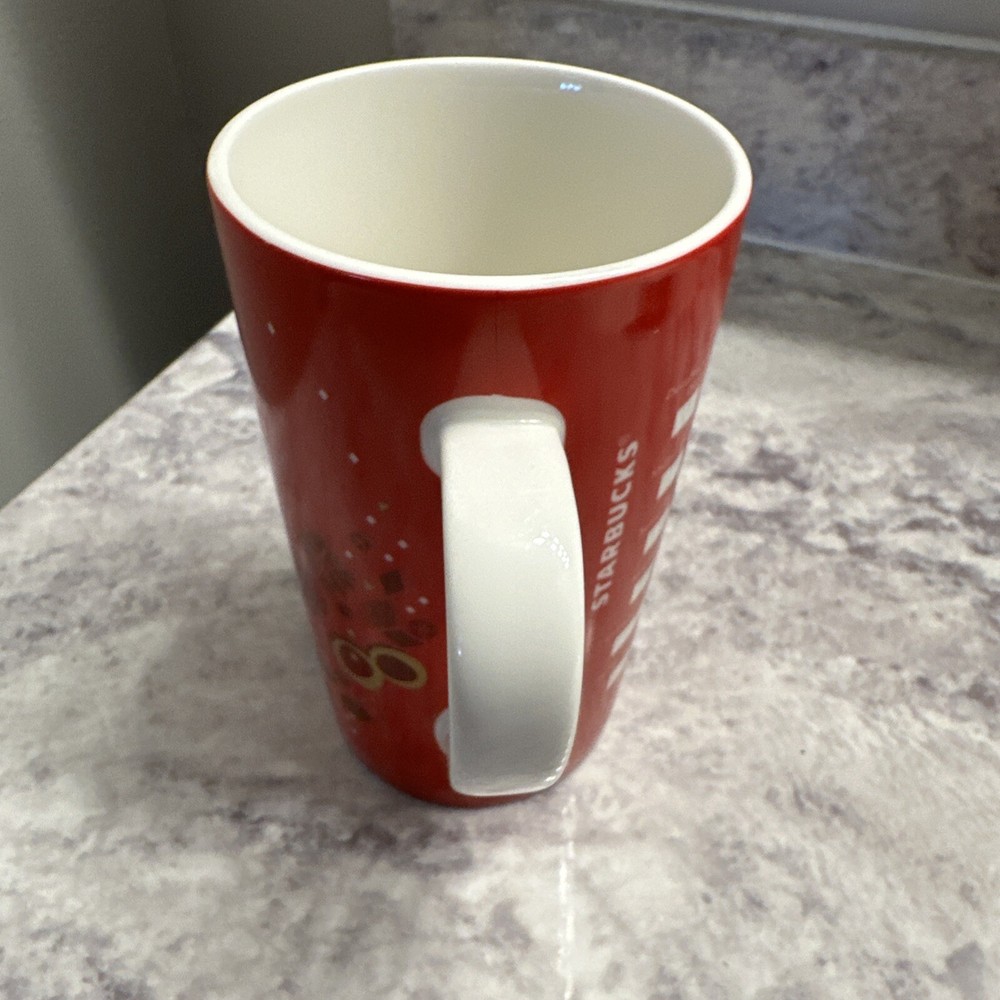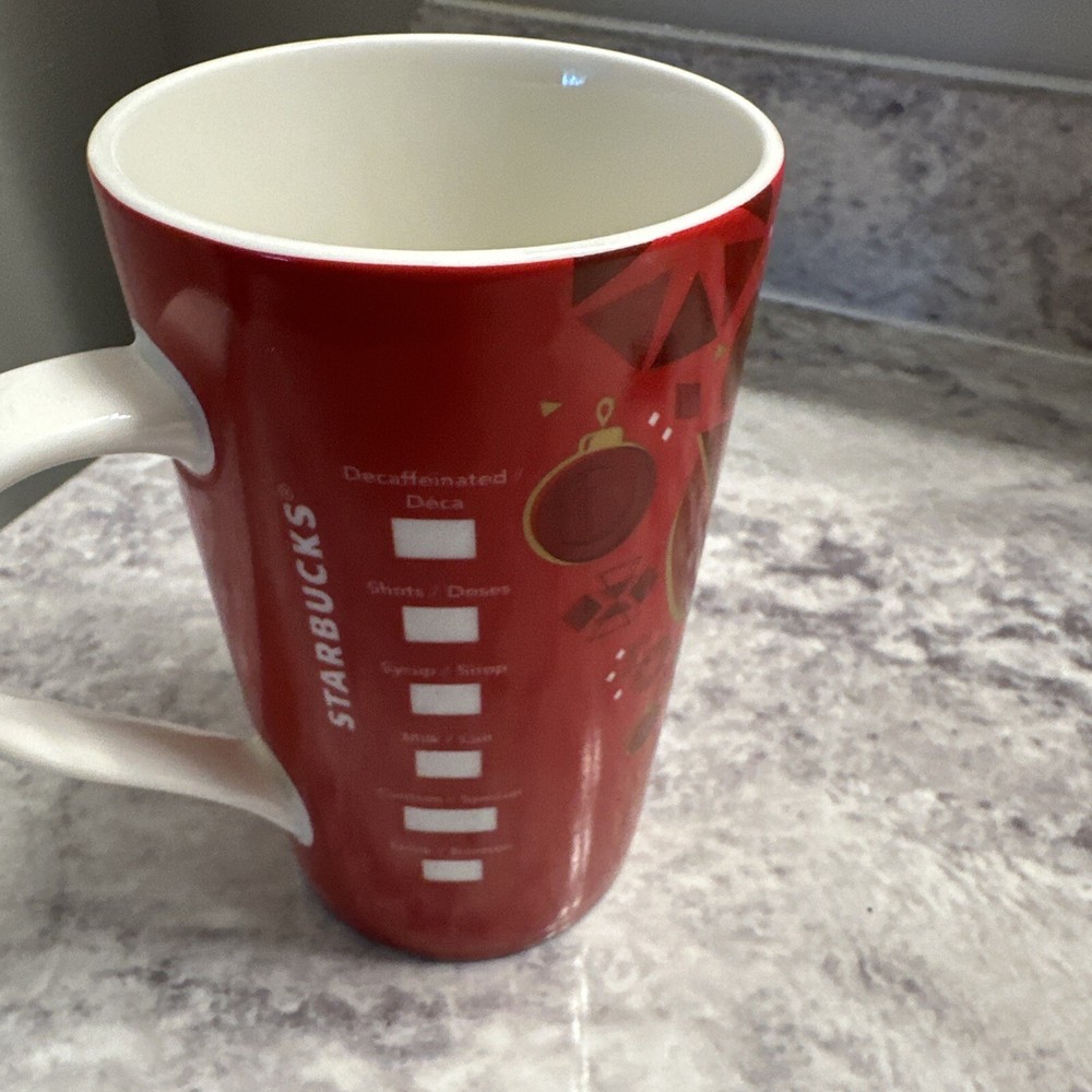 The product is a Starbucks Tall Christmas Mug from 2013, featuring a 16 oz capacity and a festive red color. The mug is adorned with holiday ornaments, highlighting a Christmas theme. This original Starbucks mug was manufactured in China and is a part of the coffee and tea collectibles range. Perfect for coffee enthusiasts and collectors, this mug is a special addition to celebrate the holiday season with a touch of Starbucks charm.