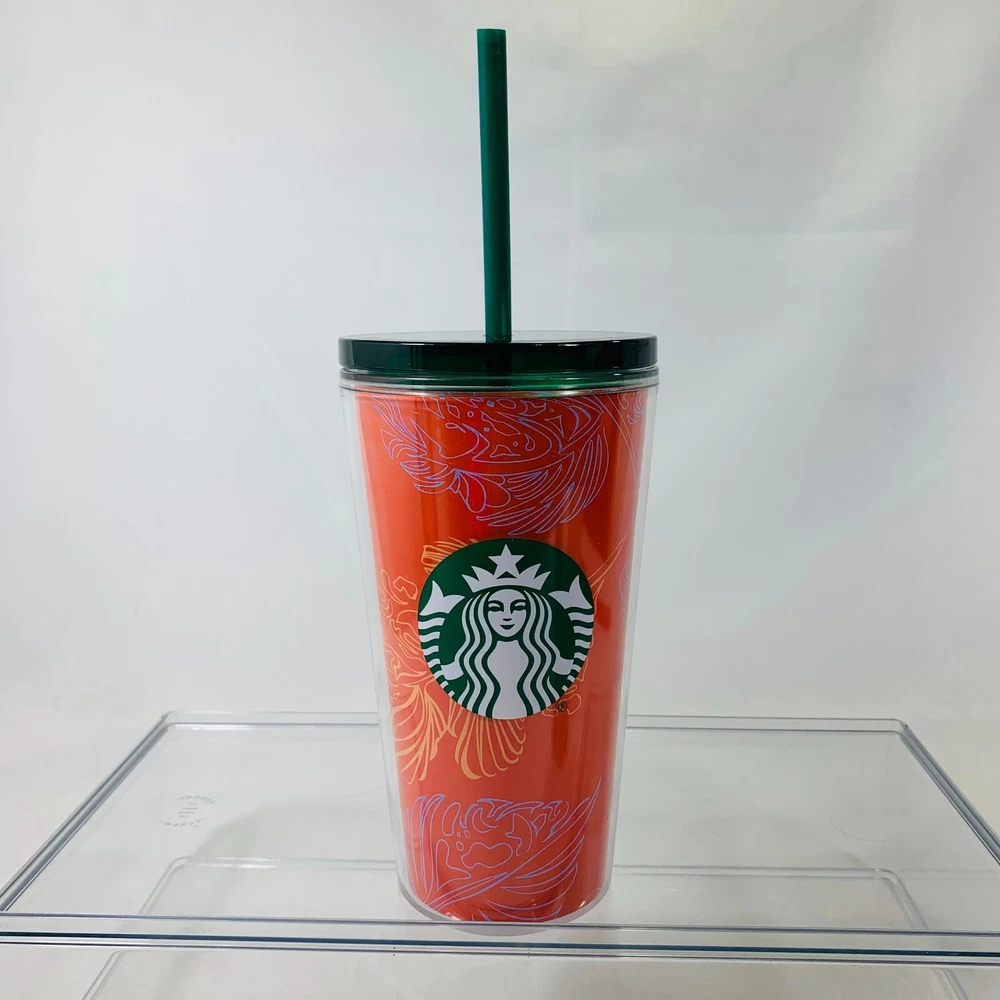 This Starbucks 16oz Reusable Cold Cup Tumbler Straw in Orange is perfect for coffee and tea lovers alike. The cup features a beautiful fall floral leaves design, making it a great addition to any collection. The brand, Starbucks, is known for its high-quality products and this cup is no exception. The cup is made for those who appreciate originality and uniqueness. It is a great collectible item for coffee and tea enthusiasts. This cup is perfect for enjoying your favorite beverage, whether it's hot or cold. Get your hands on this Starbucks 16oz Reusable Cold Cup Tumbler Straw in Orange today and add a touch of elegance to your collection!