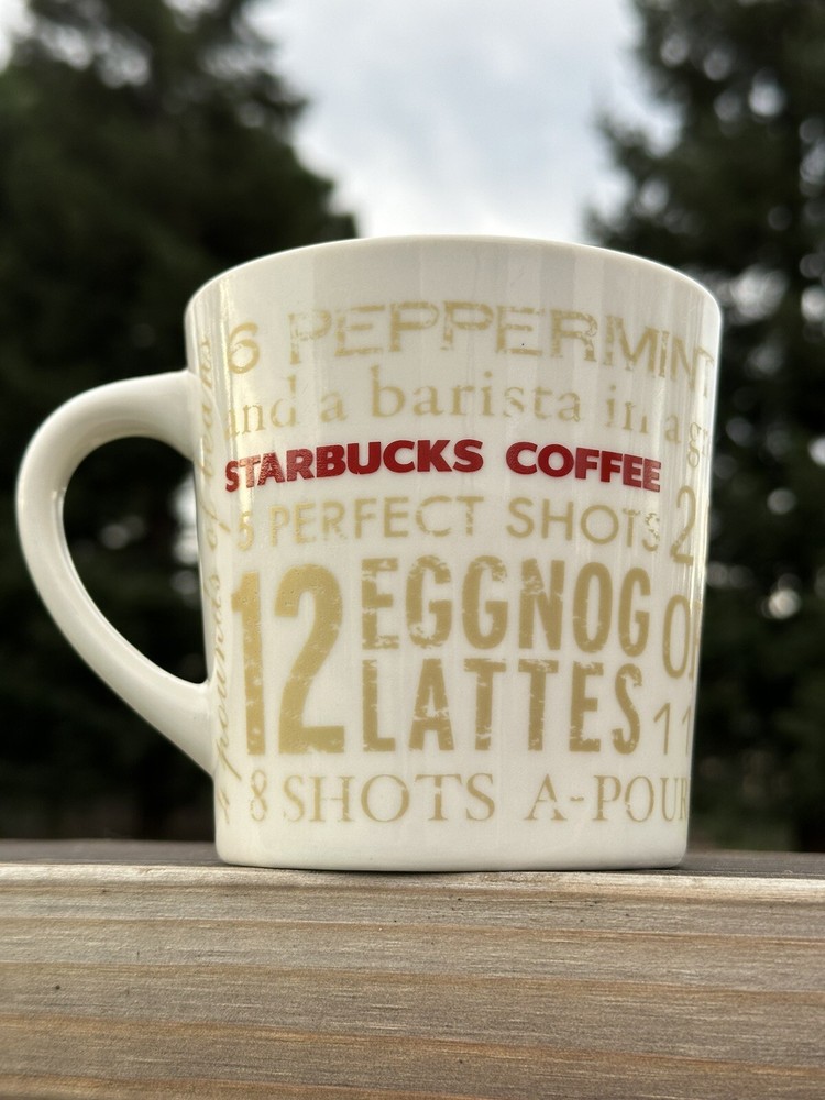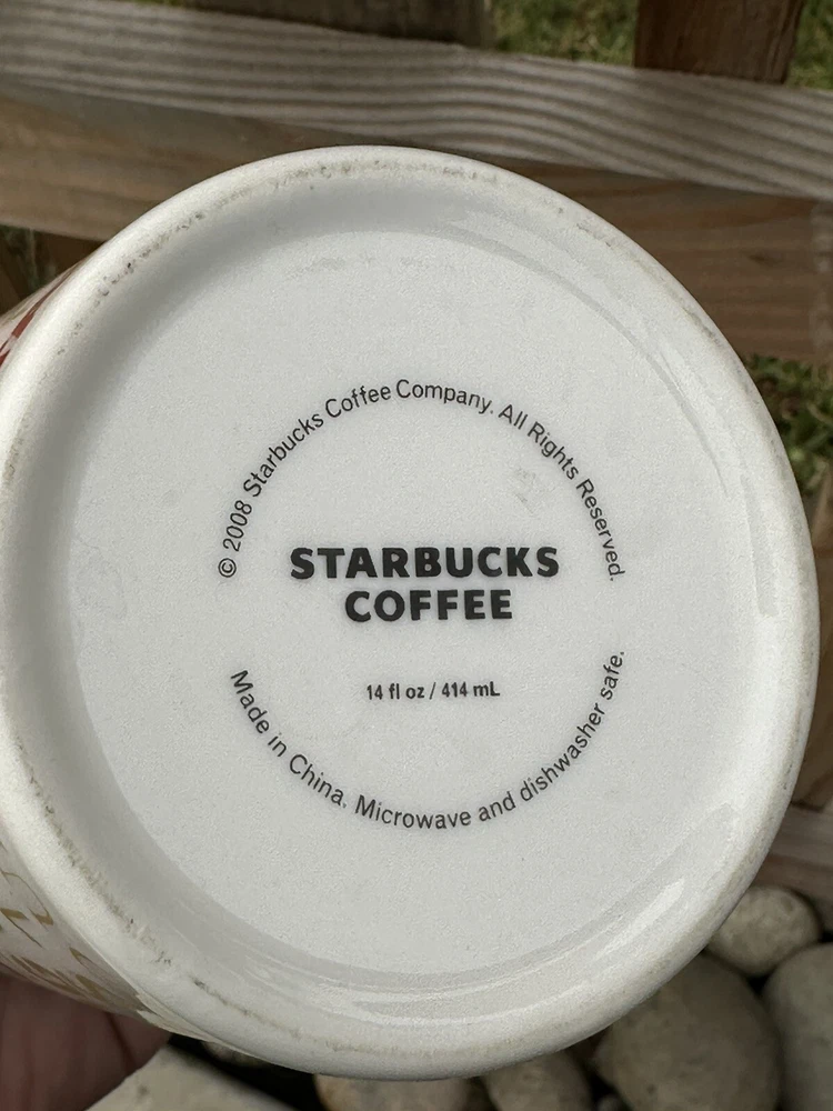 Get into the holiday spirit with this festive Starbucks coffee mug. Adorned with the classic red, white, and gold color scheme, this 14oz ceramic mug features the iconic Starbucks logo along with the "12 Days of Christmas" theme. Perfect for sipping your favorite coffee or tea while sitting by the fireplace, this mug would make a great addition to any collector's collection. Made by the Starbucks Coffee Company in 2008, this mug is a must-have for any coffee lover or holiday enthusiast. Good condition Clean Smoke free Will package carefully