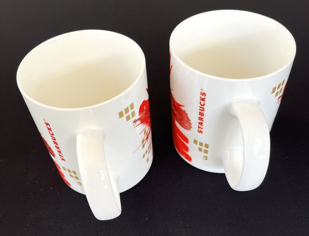 Thi s is for a pair (2) collectible Starbucks 12 oz. mugs for Christmas holiday season from 2014. Each measures about 3.75 inches tall and 3.25 inches across in the opening (not including the handle). Each weighs 10.2 oz. Both mugs are previously owned but excellent and mint as shown. A $1 bill is placed for size reference and not included. Please review pictures, description and ask all the necessary questions before purchasing this item as all sales are final! * * * Non-smoking environment! * * *
