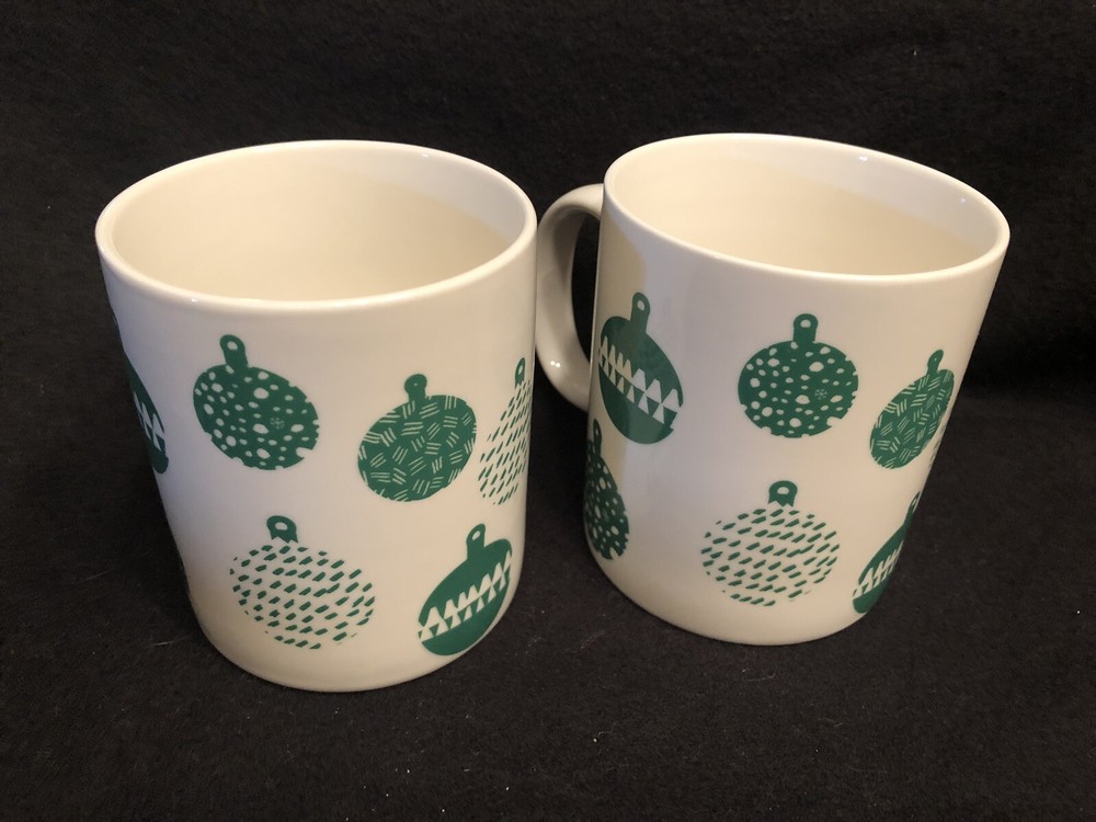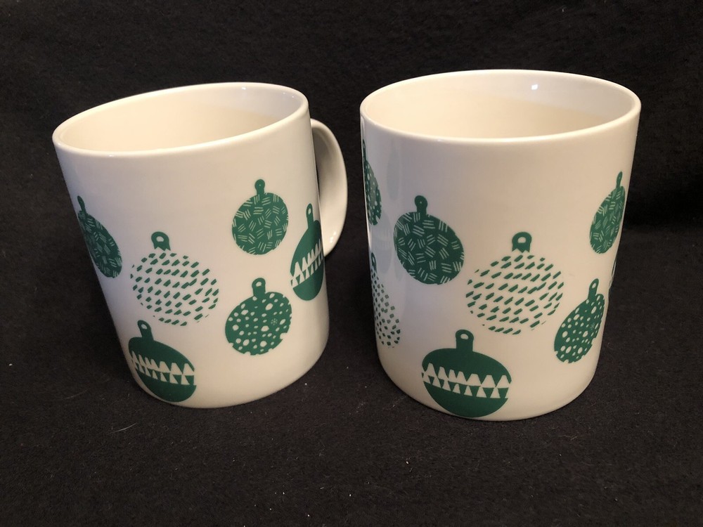 This is a Set of 2 Starbucks Christmas Mugs/Cups from 2016. They are basic White with a repeating round Green Ornament design. They hold up to 12 ounces of your favorite beverage including Coffee and Tea. Mugs are in good pre-owned condition. There are no nicks, chips, cracks or repairs. Please review and enlarge all photos for additional details and views. Shipped with USPS Ground Advantage.