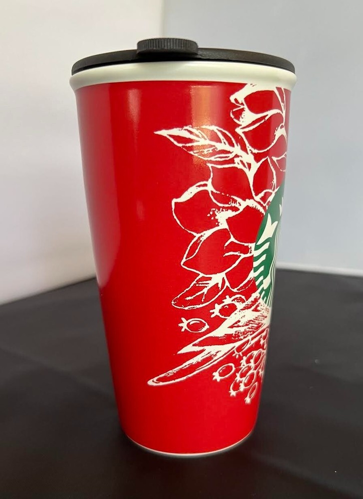 The Starbucks 2016 Holiday Christmas Red & White Ceramic 12-oz Travel Mug with Lid is an original collectible featuring the iconic coffee and tea theme. This travel mug showcases the classic Starbucks brand in a festive red and white color scheme perfect for the holiday season.