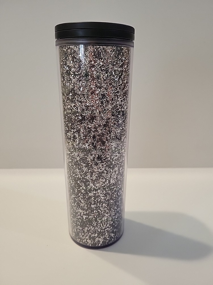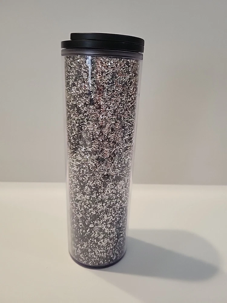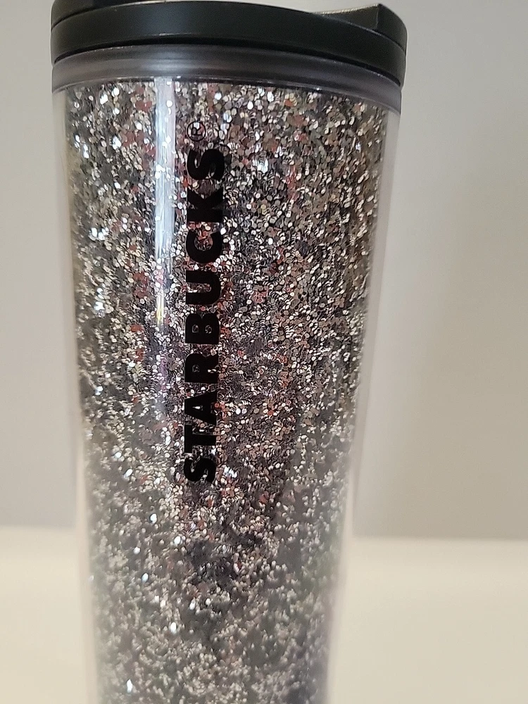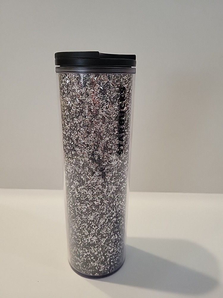 Love this Starbucks holiday cup! The silver glitter design is festive and stylish, and it keeps my drinks hot or cold for hours. The size is perfect for on-the-go, and it's still in great condition. A must-have for any coffee lover!