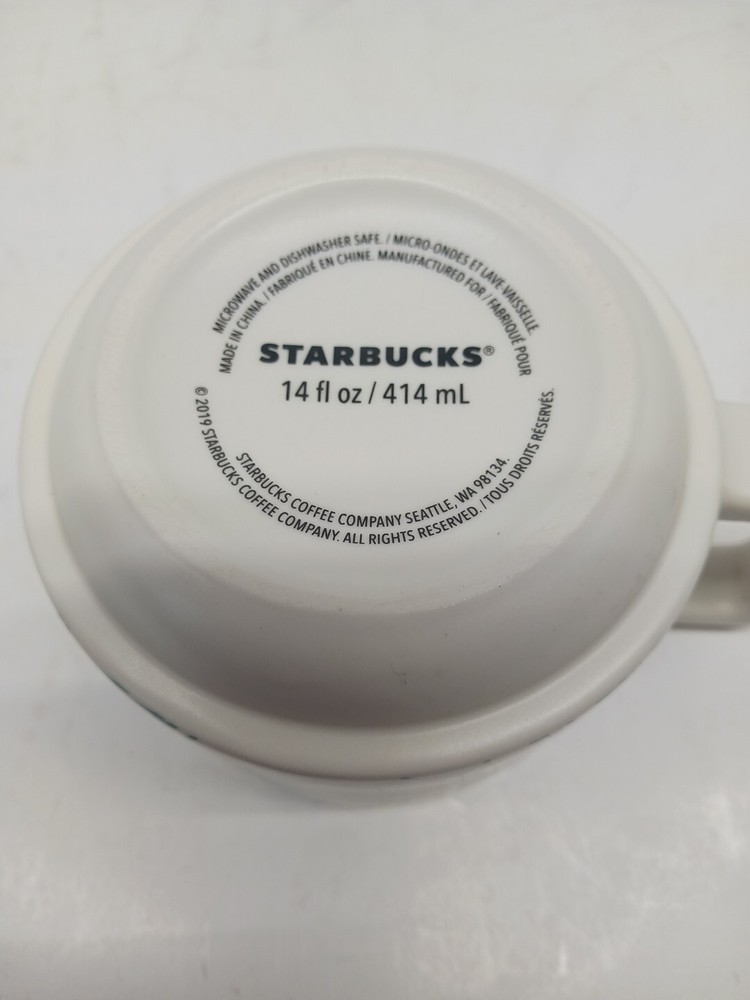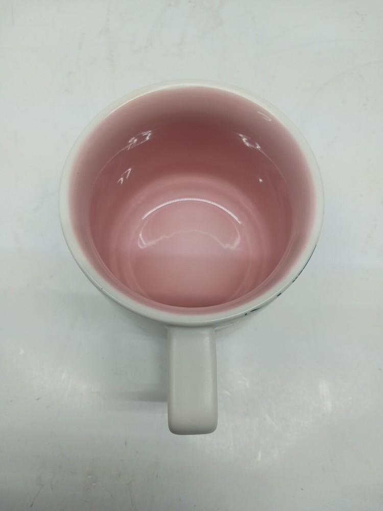 Colors:Teal Green on Ivory. Pink insideCountry/Region of Manufacture:ChinaModified Item:NoFeatured Refinements:Starbucks MugDate of Creation:2019Material:CeramicSize:14 OuncesOriginal/Reproduction:OriginalBrand:StarbucksType of Advertising:MugColor:ivory, teal, & pinkTheme:Coffee & Tea