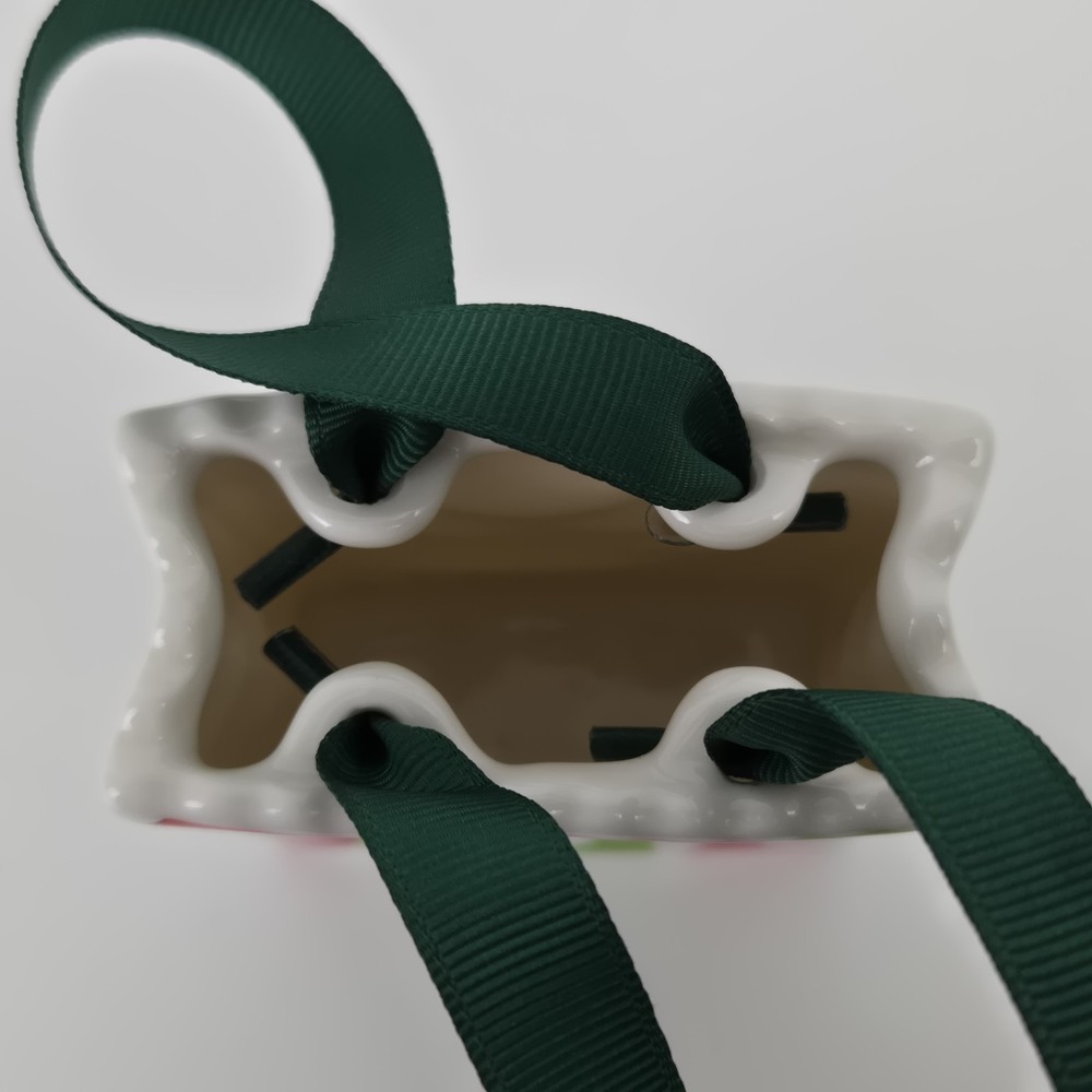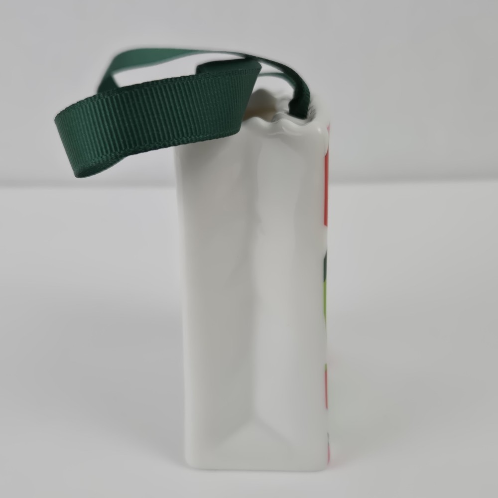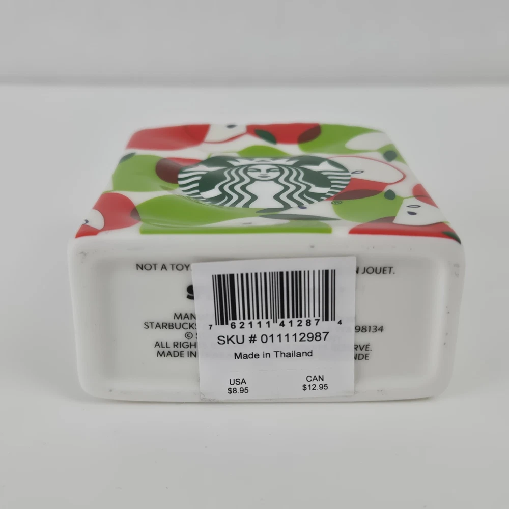 This Starbucks Ceramic gift bag is perfect for holding a gift card or other small item. It measures 3" x 1 3/8" x 3.5". Might be good as a teacher appreciation gift with the nod to the traditional apple gift.