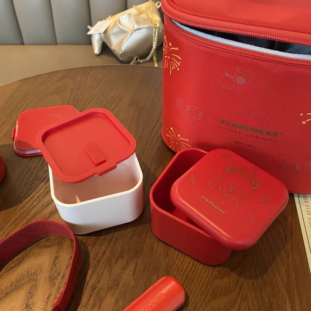 HomeStarbucks 2021 China Happy Ox Year Lion Dance Lunch Box with Steamed Beaker
