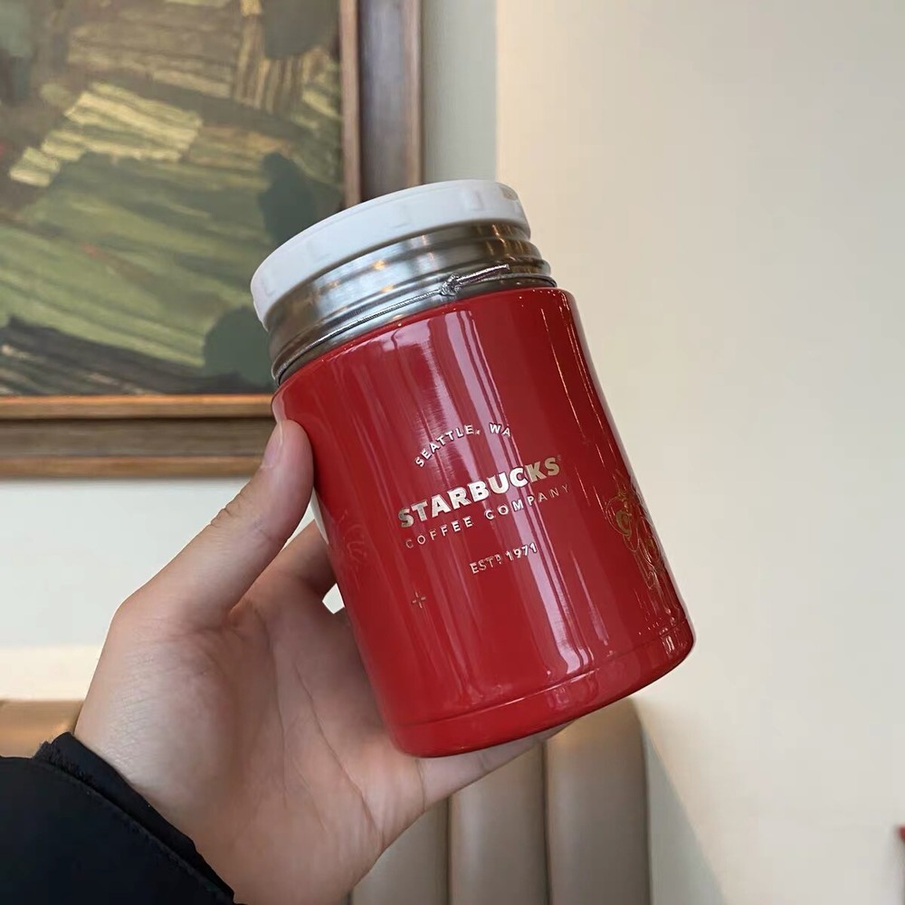 New Starbucks 2021 China Happy Ox Year Lion Dance Lunch Box Steamed Beaker New with sku#