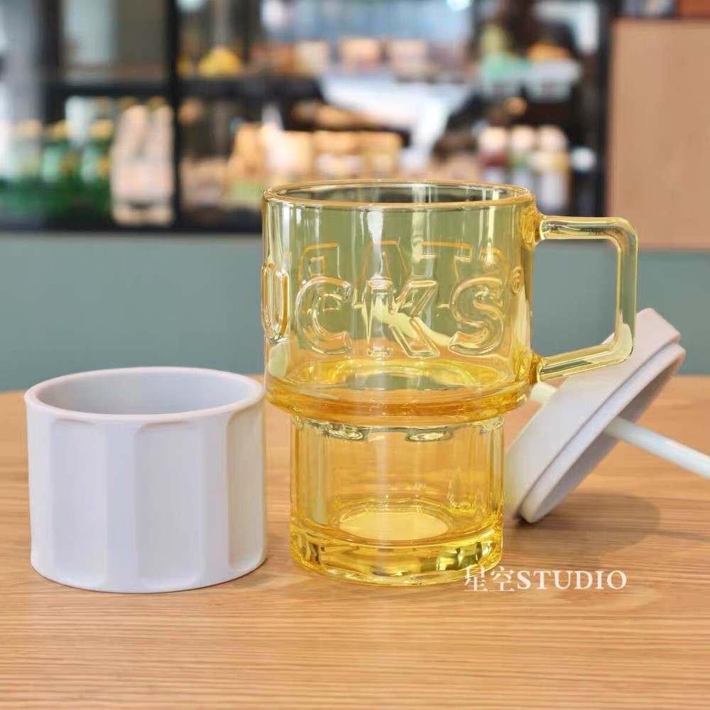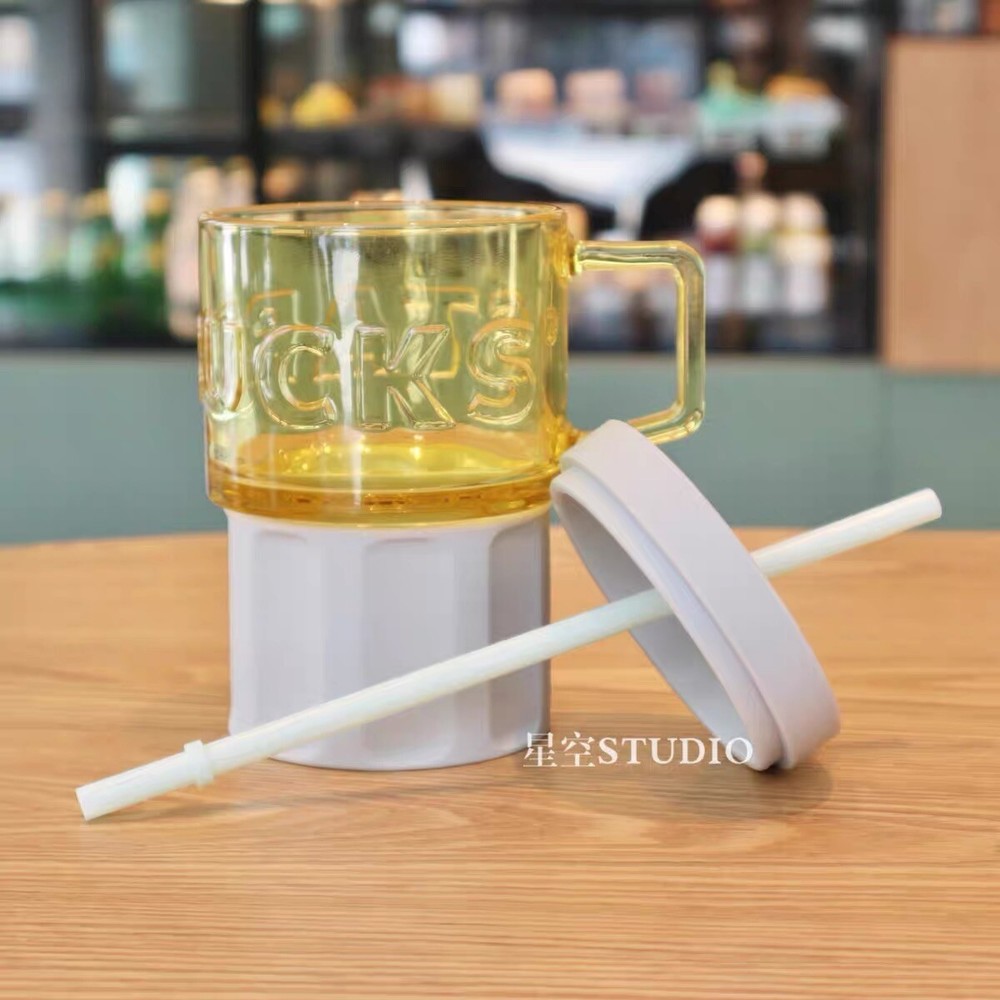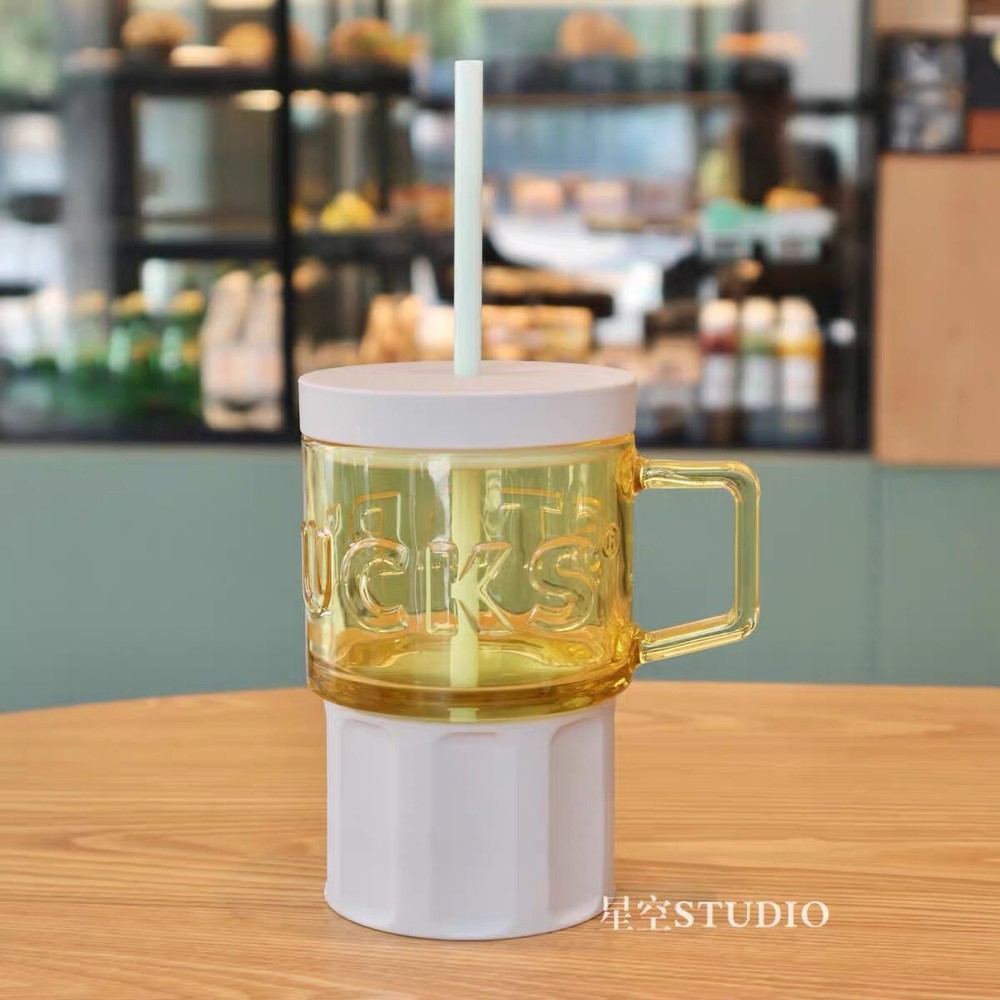Starbucks 2021 China Summer Yellow Glass And Grey Silica Gel 18oz Cup Tumbler New with sku#