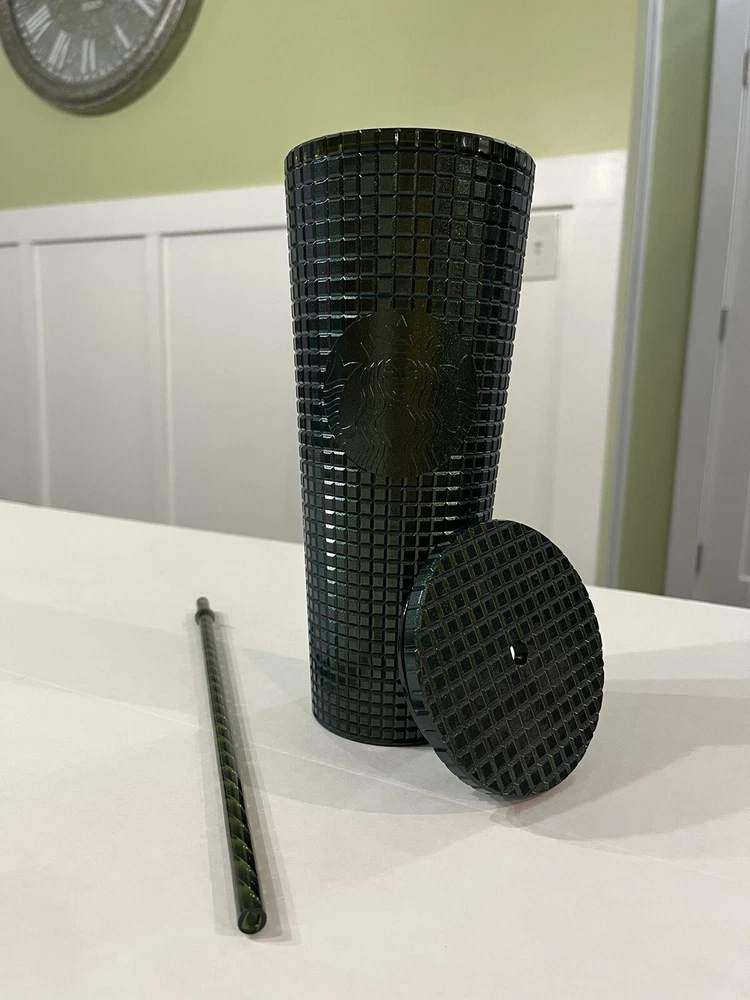 Starbucks 2021 Holiday Dk Green Metallic Grid Disco 24 Oz Cold Cup Tumbler. Condition is New. Shipped with USPS Ground Advantage.
