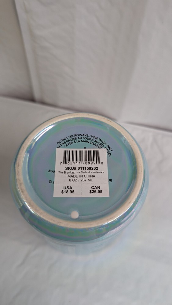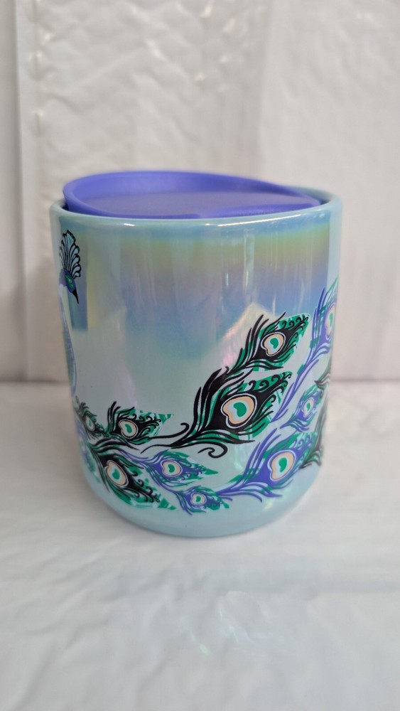 New Starbucks 2024 Christmas Holiday Iridescent Peacock 8oz Ceramic Cup with Lid. Condition is New. Shipped with USPS Ground Advantage.