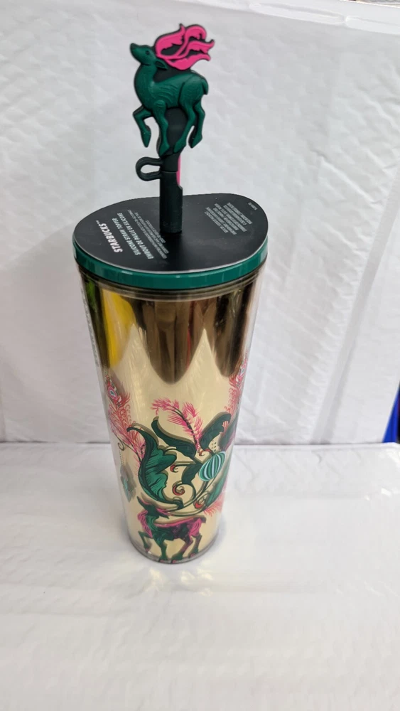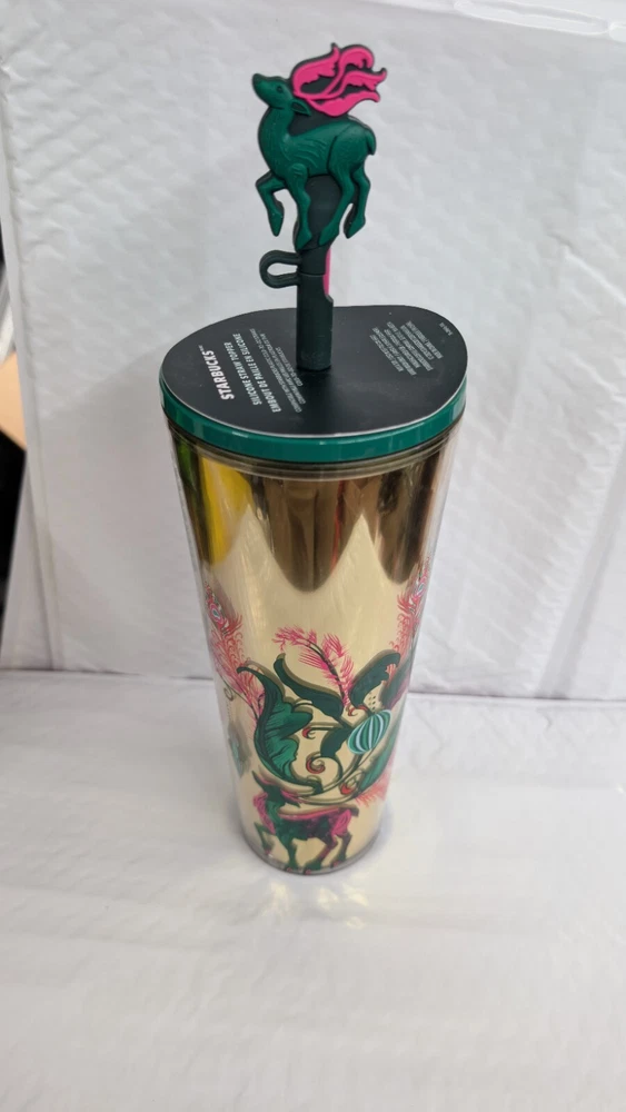 Starbucks 2024 Holiday Reindeer (Peacock Collection) Cold Cup NWT. Condition is New. Shipped with USPS Ground Advantage.