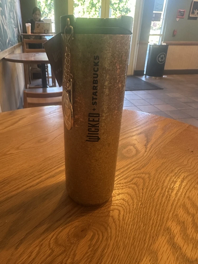 Starbucks 2024 Wicked Collection Gold Crackle Cold Cup with Oz Charm 16OZ NWT - All that glitters really is gold with this shimmering cold cup that celebrates the Land of Oz. - Limited Edition - Cold drinks only